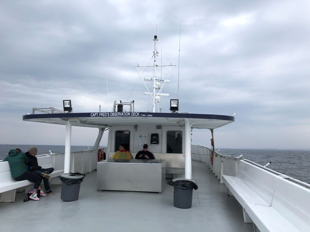Cape Ann Whale Watch does a pretty good job of taking care of their passengers. They provide safety instructions, informational talks, educational talks, and updates on what’s going on. They guarantee a whale sighting on every trip, and we definitely saw whales. But for the first 3 1/2 hours, we saw a whole lot of rain on the waves, each other, and nothing else. One really awesome thing is that this was my very first trip on the Atlantic Ocean!