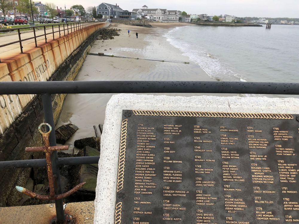 Along the Gloucester beach there are many monuments, such as this one that acknowledges the mariners that have died at sea here since 1716.