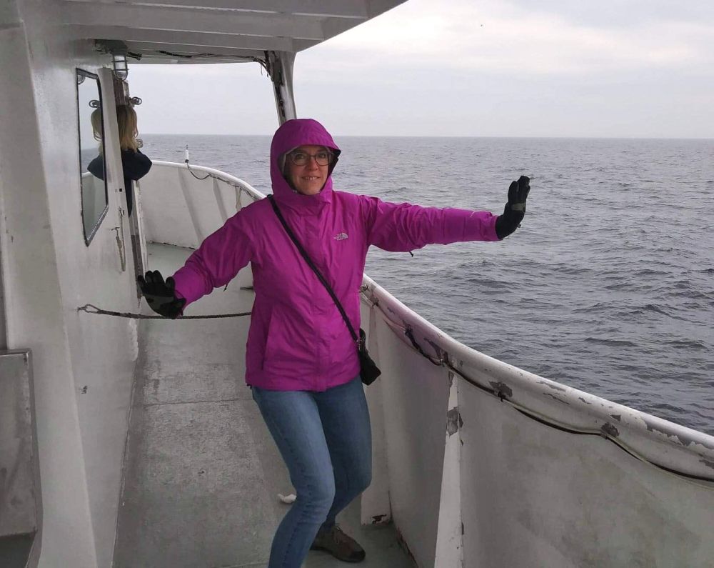 Here’s me, demonstrating my balancing skills as the boat tossed around on the waves. {photo Will Murray}