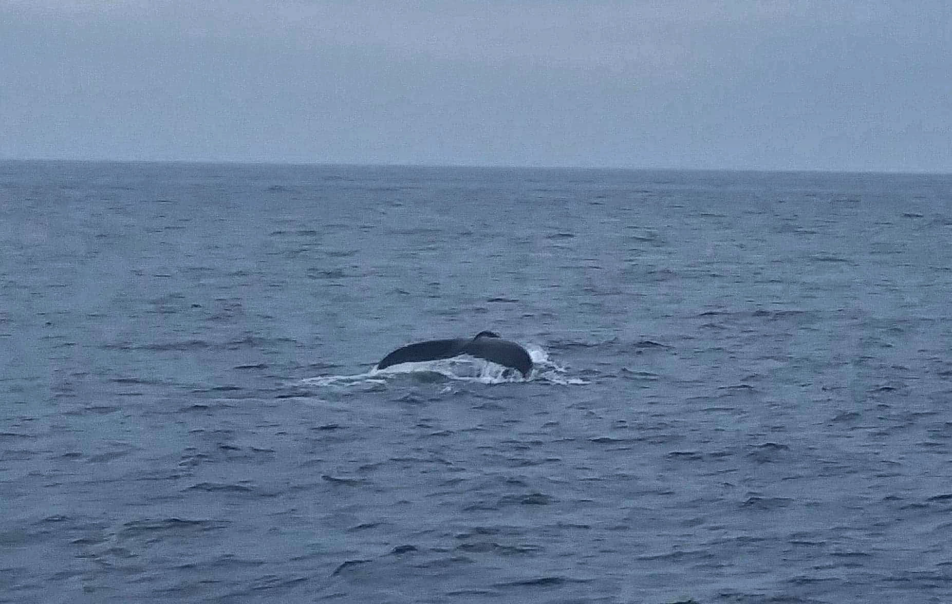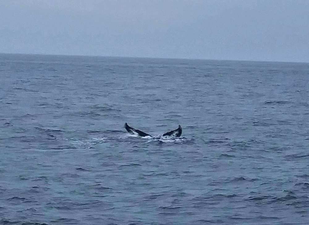 A whale tail! You can see the white markings on the black skin. {photo Will Murray}