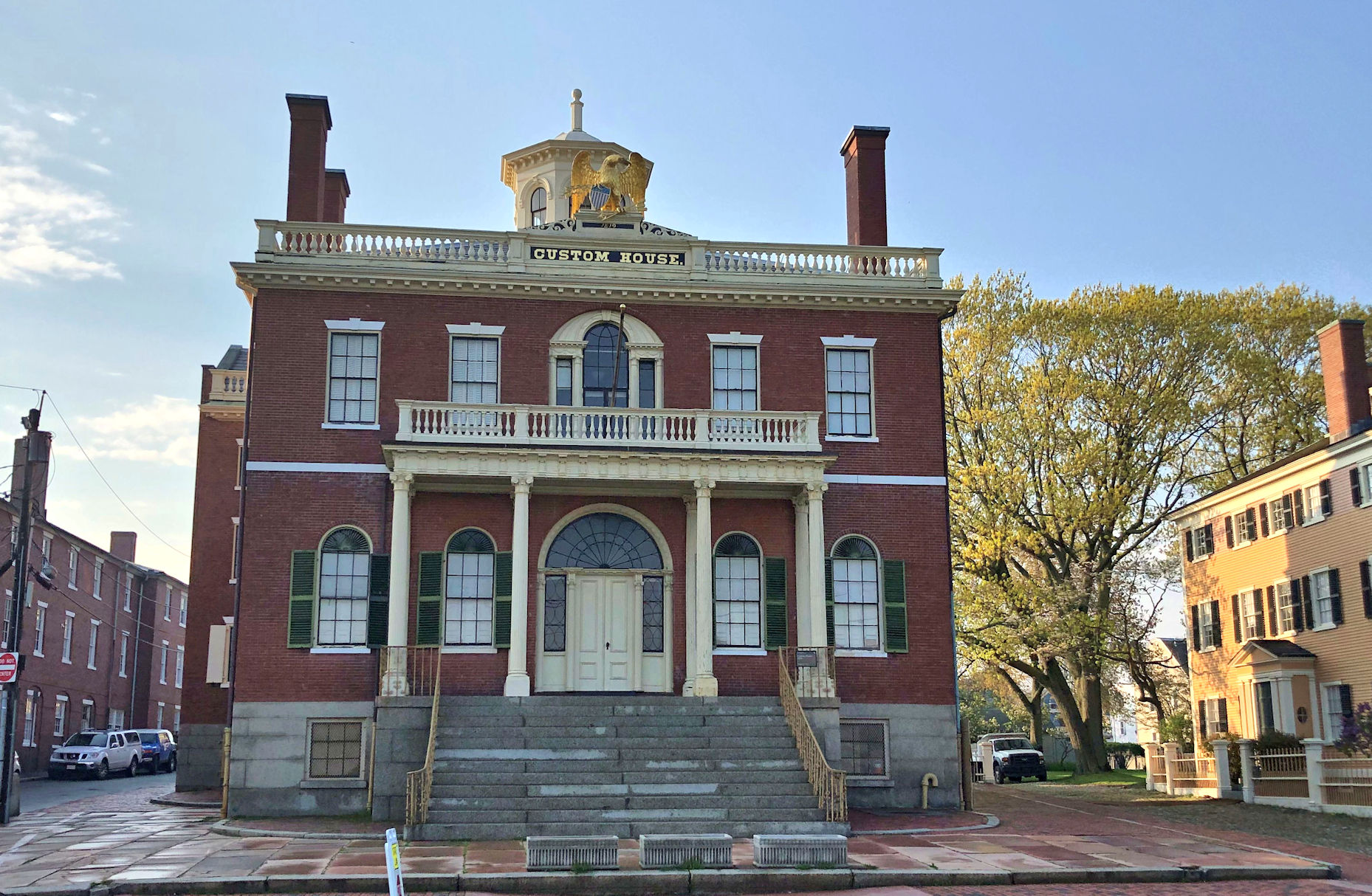 We admired the Custom House in the lengthening shadows of evening. Also from the website: “There has been a Custom House in Salem since 1649, collecting taxes on imported cargos first for the British Government during the Colonial period, then for the American Government after the establishment of the U.S. Customs Service in 1789.” It was closed so we were not able to go in and explore.