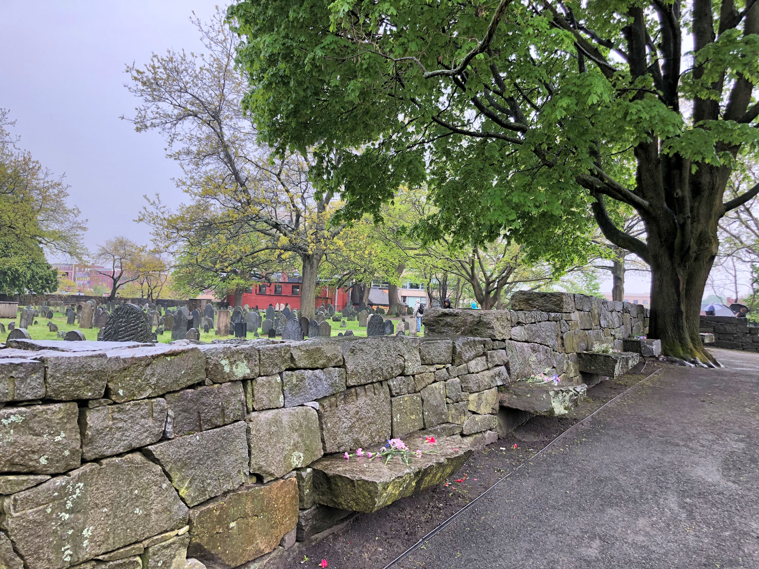 A view of the Salem Witch Trials Memorial. It is simple, but unexpectedly impactful.