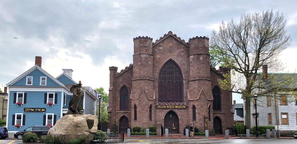 As you can tell by looking at it, the building was orginally a church. The statue of Conant was erected in 1913 beside the church. In the 1960s it was a vintage car museum.  The building was opened as a Witch Museum in 1972. Sadly, visitors who don’t take the time to read the plaque or ask any questions, often assume the statue is of a witch.