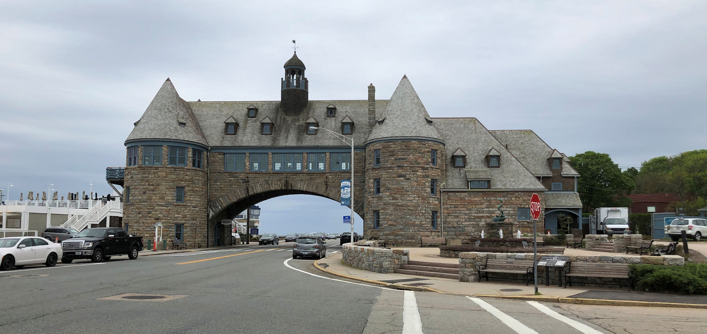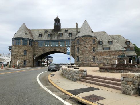 I was interested in The Towers, a massive gate of sorts, over a road in Narragansett. It was completed in 1886 as a design element to complement a new casino. Since then the casino burned down, but The Towers was saved. It is now used as an event space. Will and I went for a closer look, and found all the doors open. So, naturally we walked right in and found the place being prepared for a wedding reception.