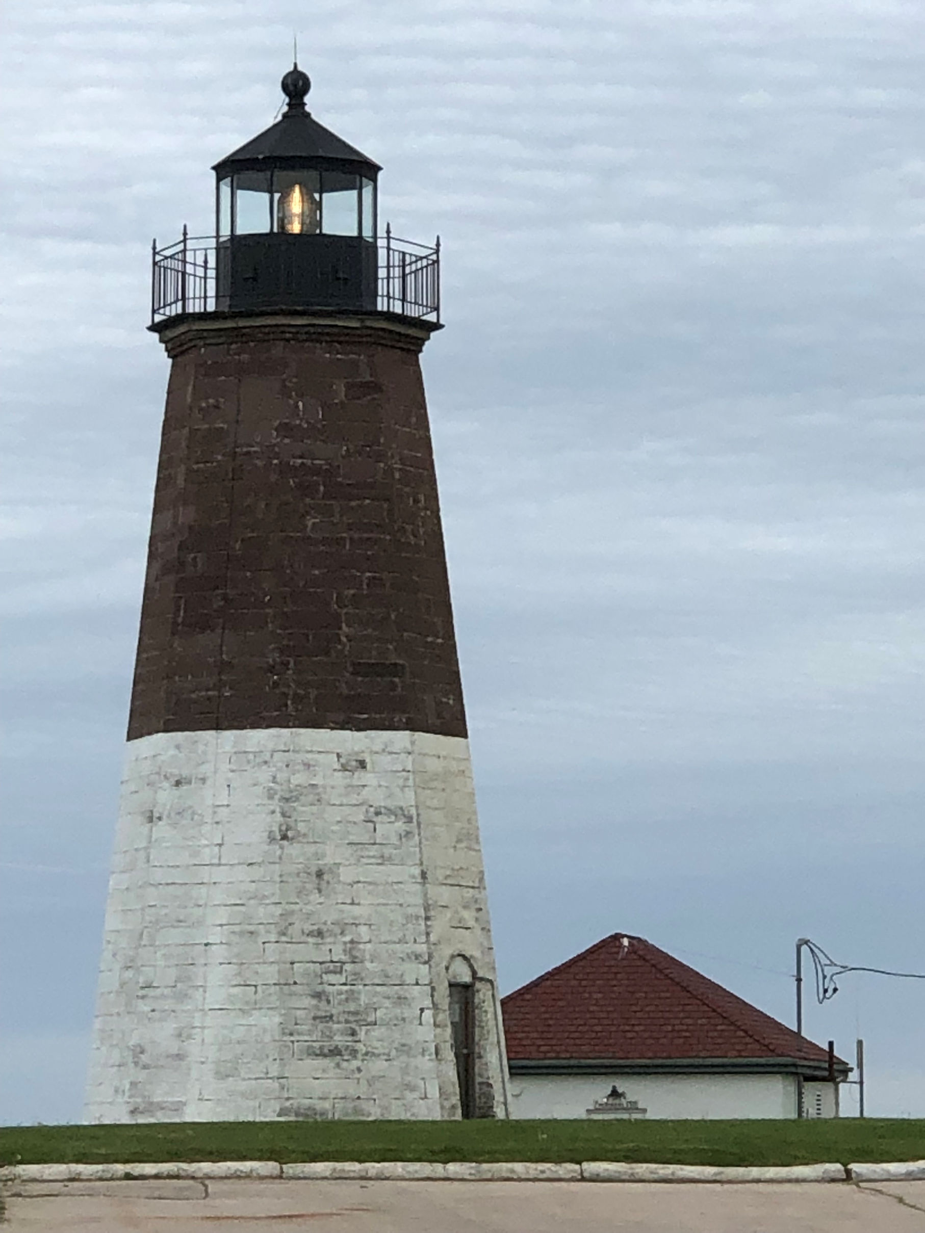 We visited the Point Judith Lighthouse next. It is our sixth lighthouse on this vacation so far. Though the first lighthouse was erected at Point Judith in 1810, a storm with an 11-foot surge rushed in and wiped out the tower and the keeper’s home in 1815, although miraculously the lighthouse keeper survived. The third and current lighthouse was completed in 1857.