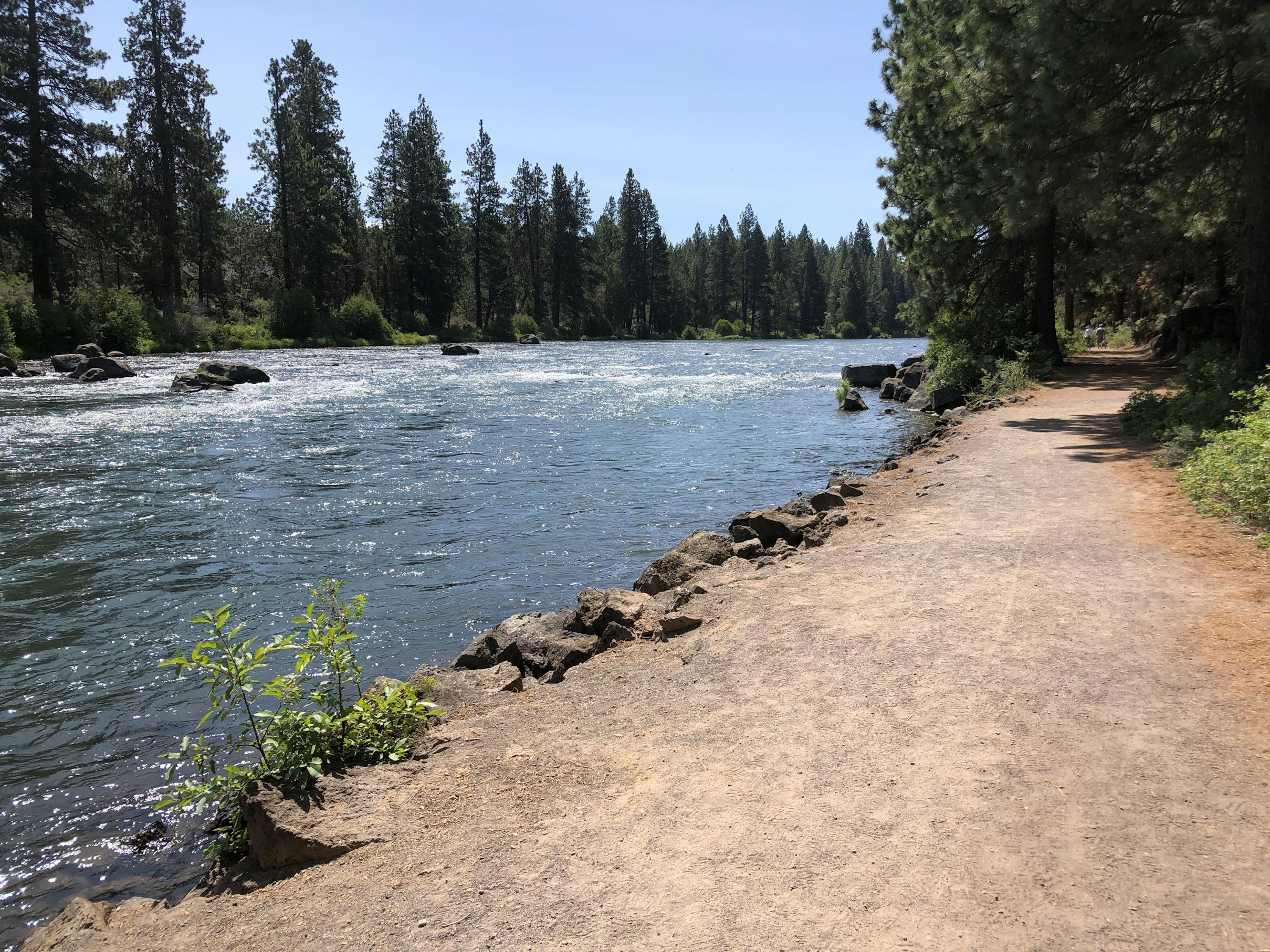 With hours to kill, I had time to play in Bend. I used my AllTrails app to find something quick and easy, and soon found myself walking along the Deschutes River South Canyon Trail. I walked first toward the center of town, along a very pretty waterfront walk, clearly a hit with summer tourists. The trail crossed the river and I headed back out of town for an unexpectedly great 3-mile loop back to my car.