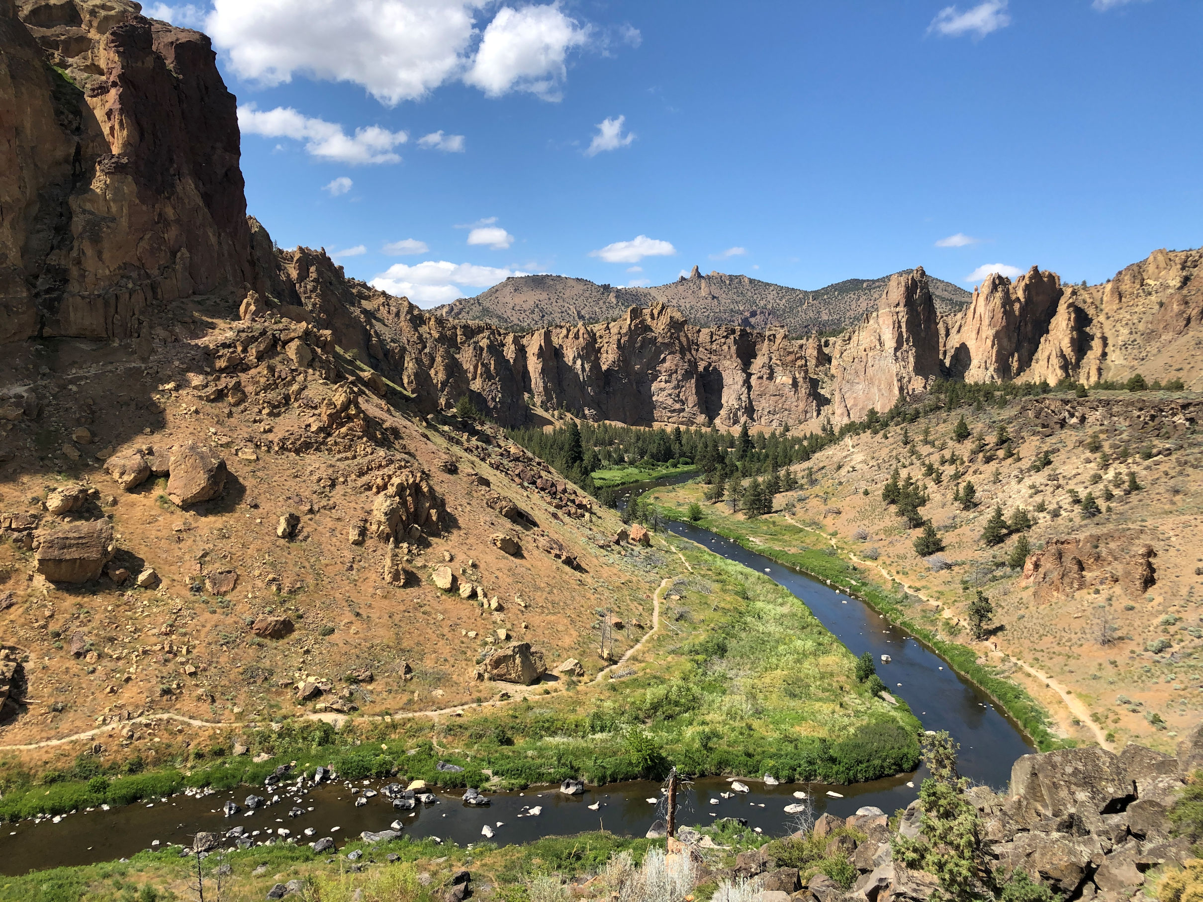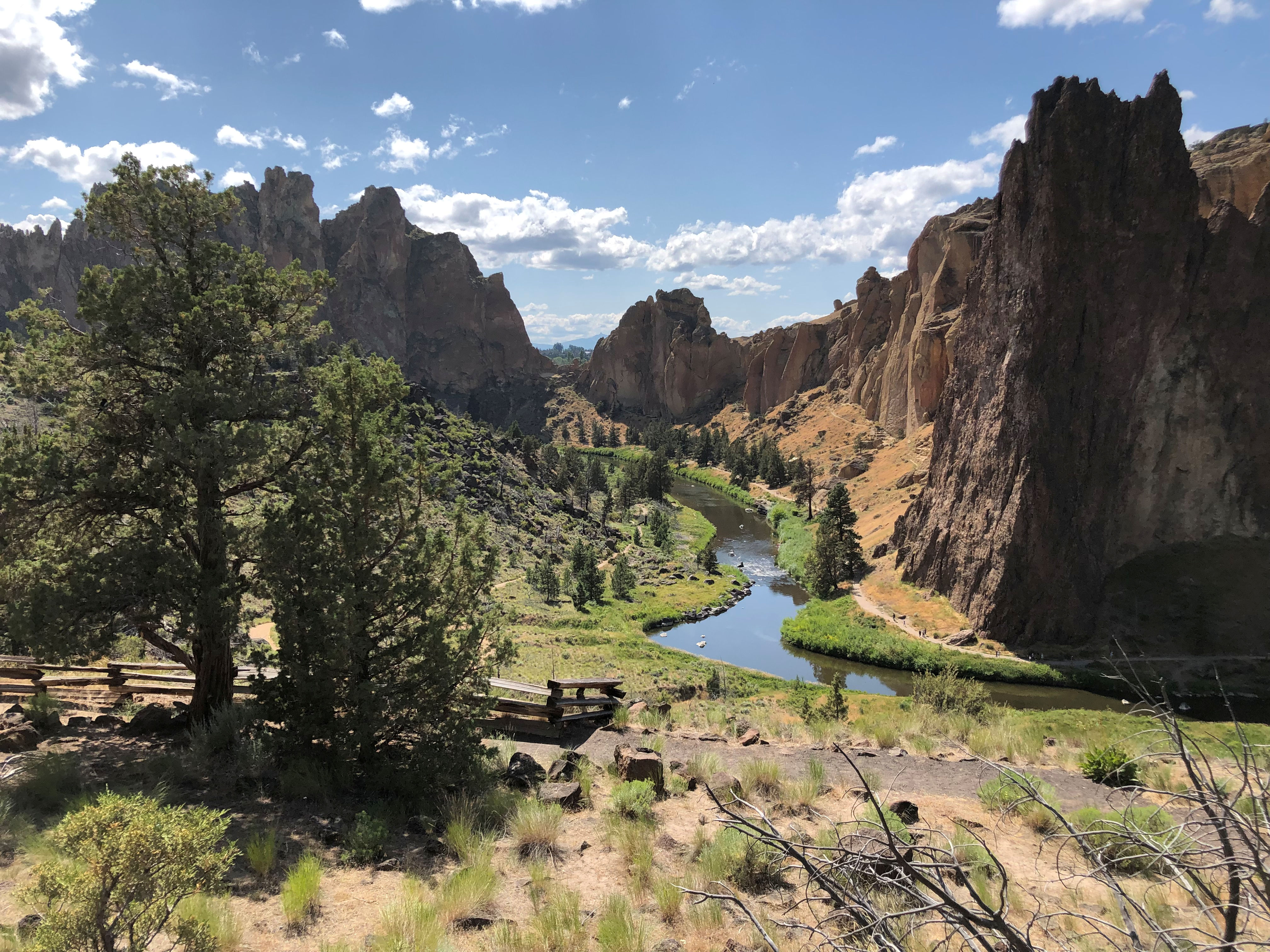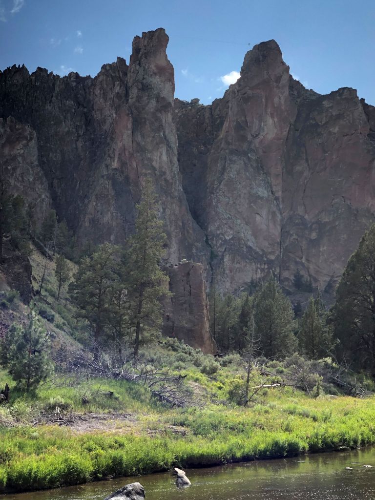 If you’ve ever seen a photo of Smith Rock, you’ll recognize it. It’s a cliff formation surrounded by comparatively level ground, with the Crooked River winding its way through the base of of the cliffs. It’s the biggest, most eye-catching thing around. The tuff and basalt cliffs are famous for being the place where the sport of rock climbing began in the States. Trails for all levels of athletes wrap around the huge rocks on all sides. I’ve been on a lot of them in visits over the years.