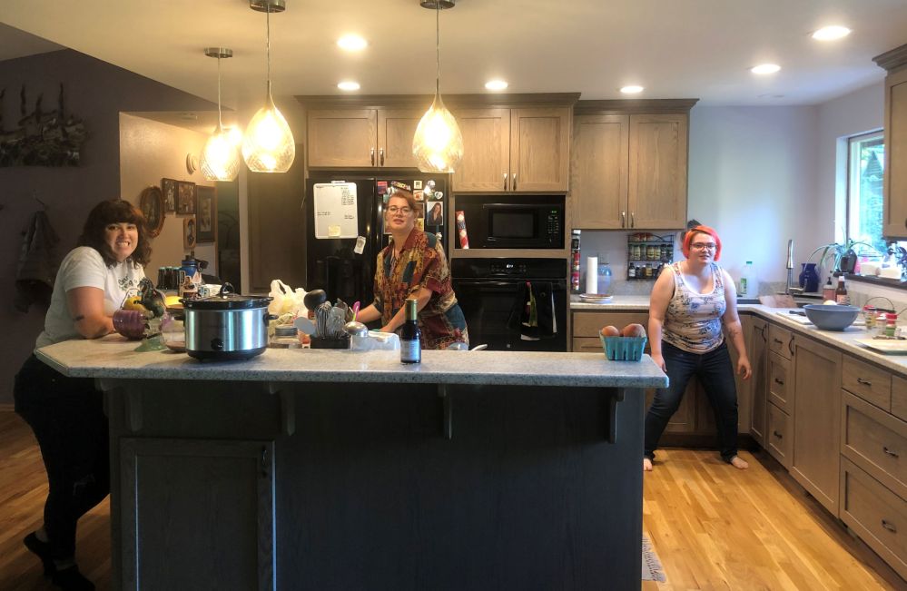 Friends in the kitchen. My front room is still dark, but believe me it is so much lighter now after the remodel.