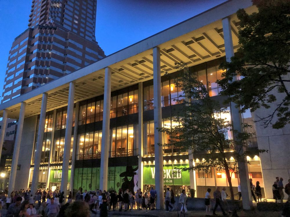 The Keller Auditorium in Portland, with crowds of people who want to see Wicked.
