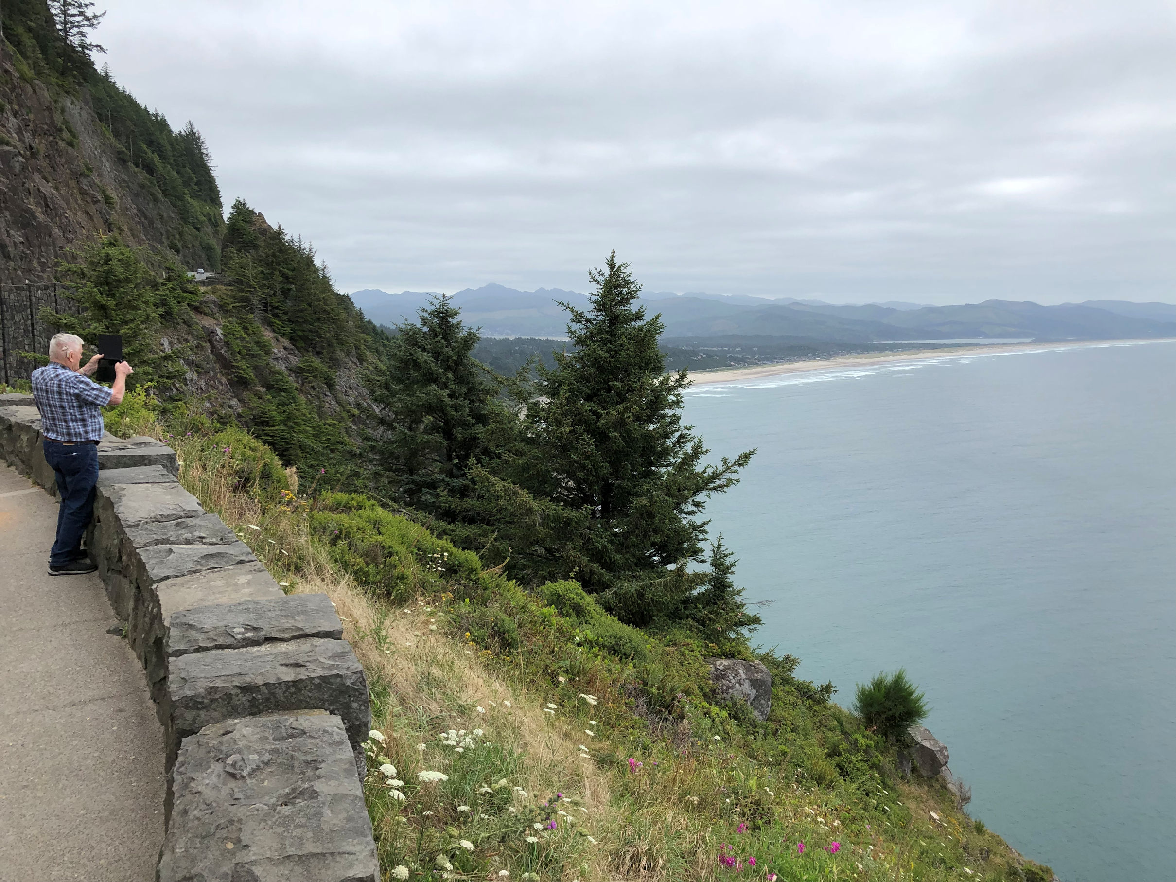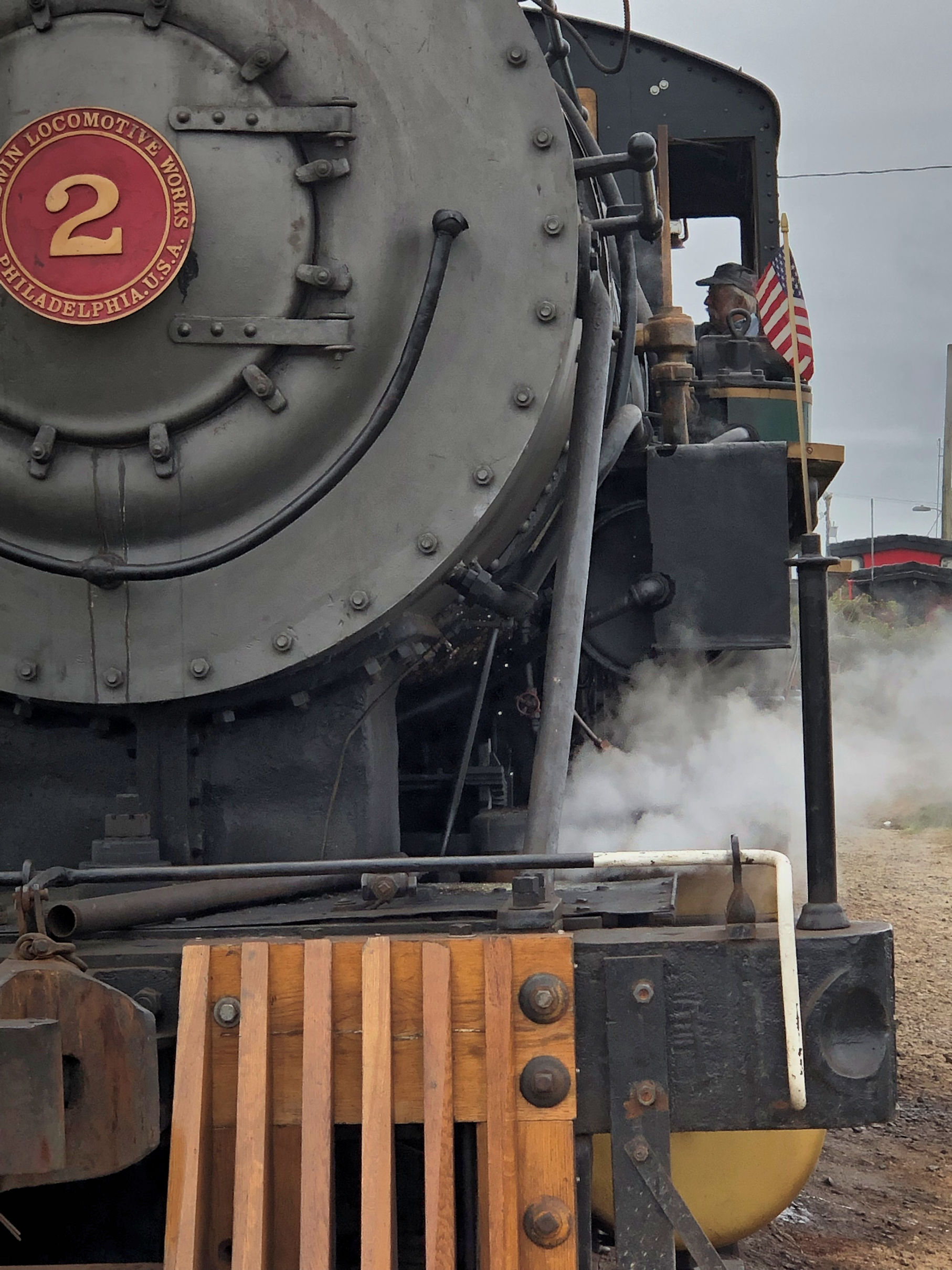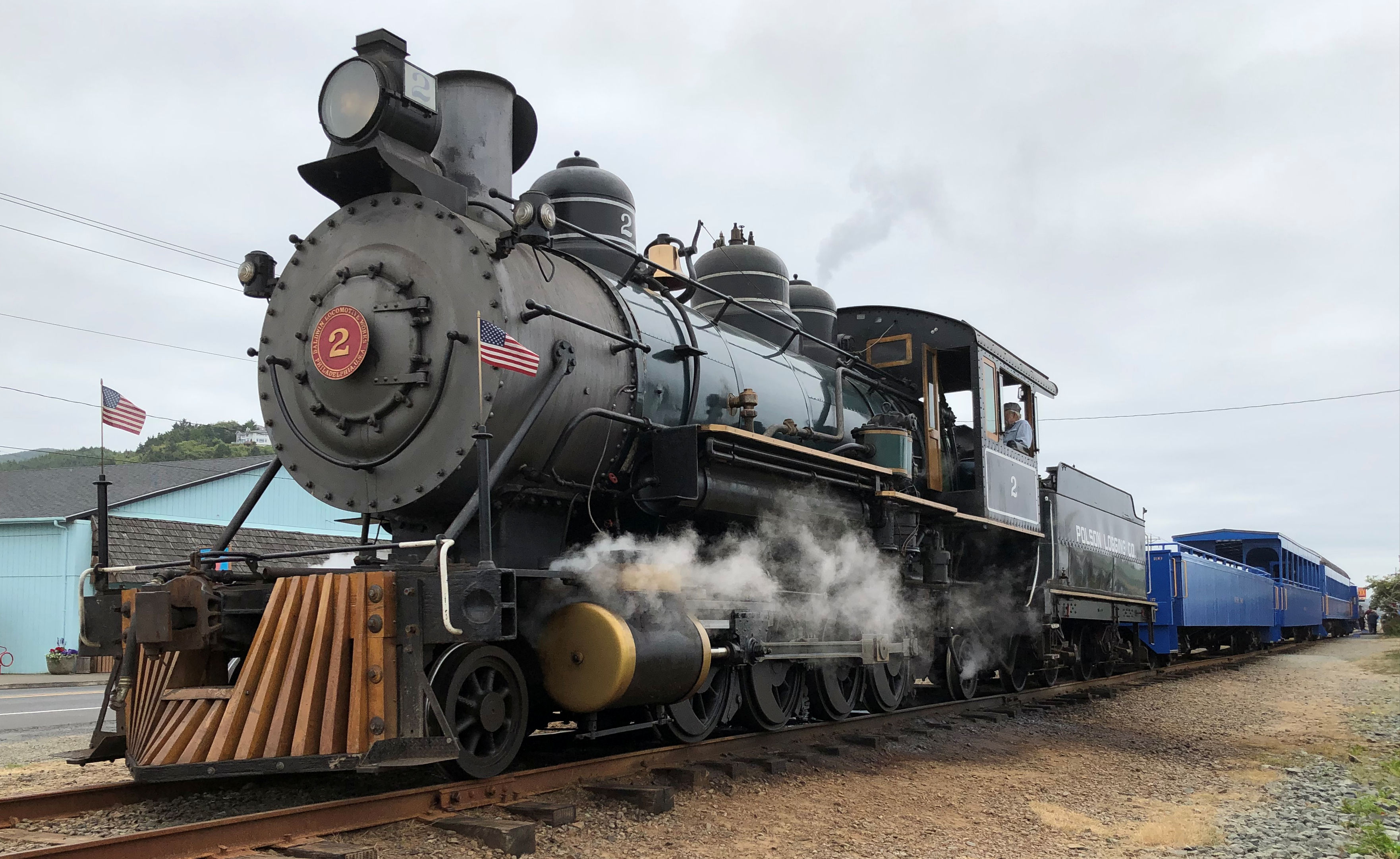 For the road trip we went directly to the coast, because – duh, he’s from Minnesota. We left my house for Astoria, then turned south along the coast highway. We stopped for overlooks and we stopped for a train! An honest to goodness steam train parked in Rockaway Beach, Oregon. We snapped photos and asked questions and found out it’s the Oregon Coast Scenic Railroad, a tourist train that runs a 5-mile route between there and Garibaldi, the next town south.