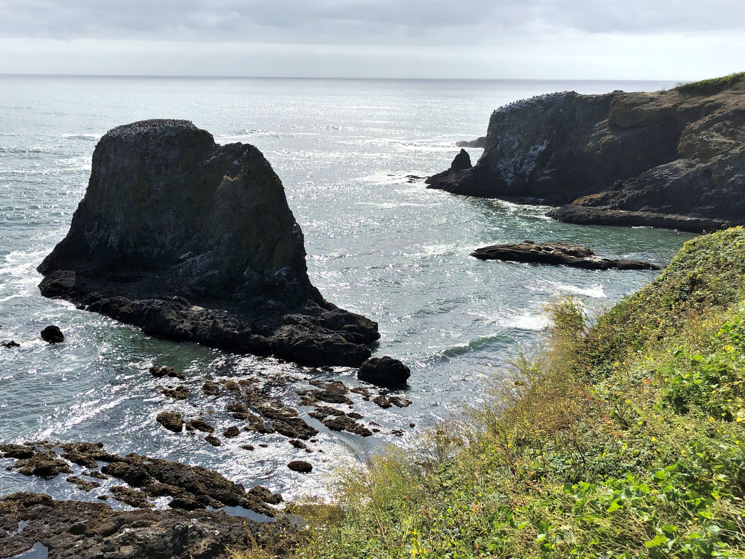 If you watch the video, at first it seems like it’s a shot of a peaceful and beautiful tidepool. But as you watch, a variety of different life forms become evident. Two crabs, urchins, anemones, a fish. Can you spot more? You can also hear us talking. I’m the one who can’t pronounce anemone, ha ha. This is some of what Jim and I did at the beach at Yaquina Head: we would find an interesting pool, and then hold still and quiet and watch. It is better than TV!
