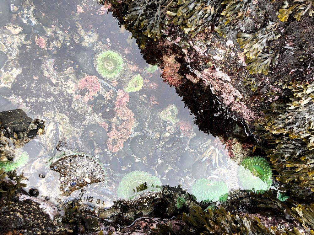 We had a blast and played with little sea critters for a long time. We had a hard time finding starfish, but finally Jim found one and then climbed precariously to a spot to get a photo. When he was done I made the same poor choice, because climbing around sketchy rocks to get a photo is pretty much my MO.