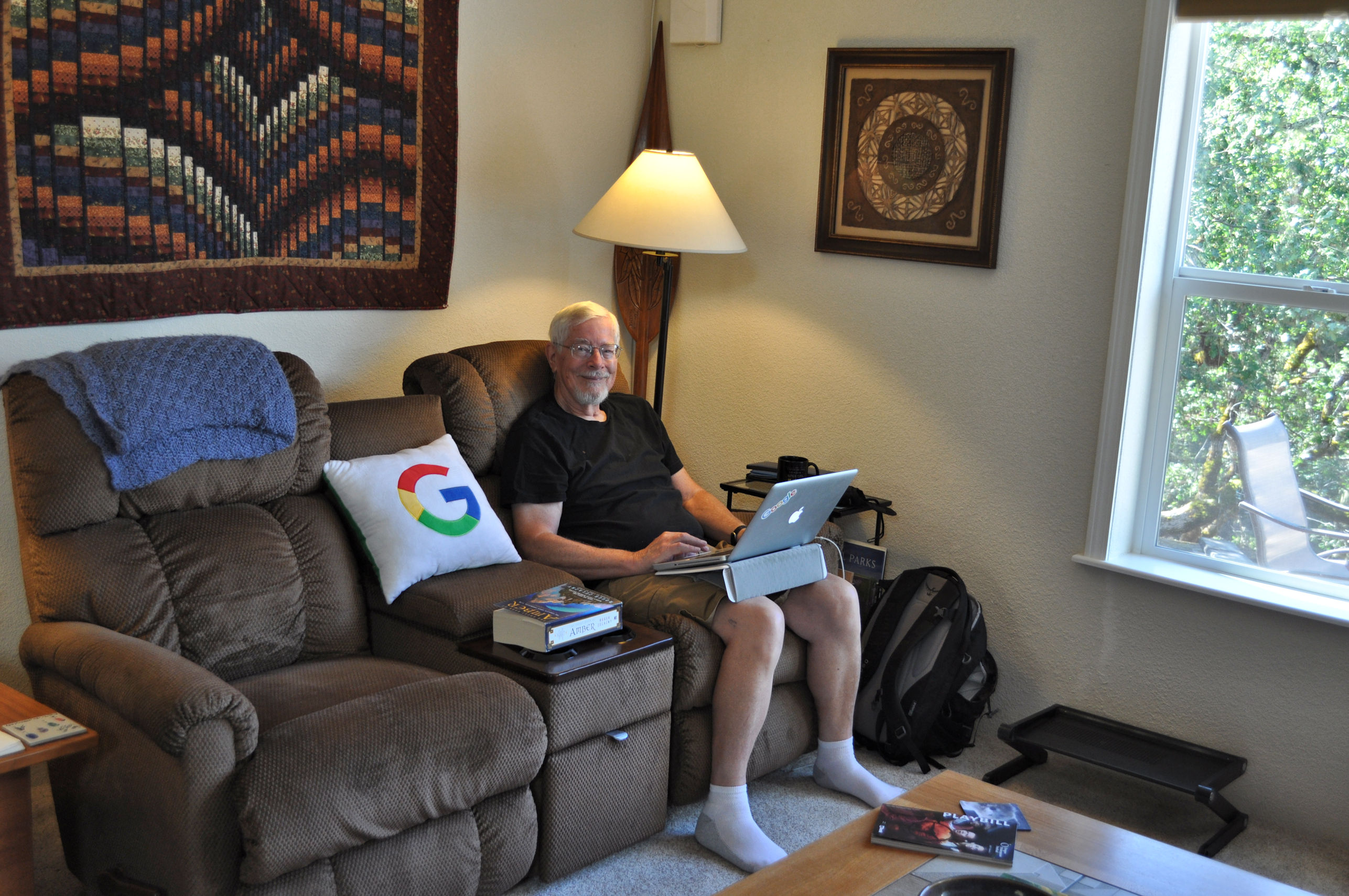 Curtis Mekemson in his “office” creating more bloggy goodness for us.