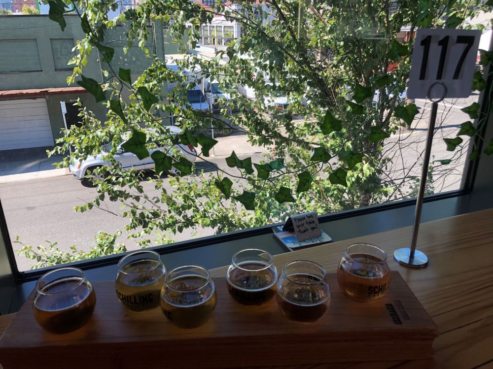 After he came down off his float high, we went to a cider place called Schilling that he had heard of. It was a super choice. Schilling serves some creative and delicious snacks, but is not a restaurant. Their point is to be a place to drink cider. There were too many choices and we both ended up getting flights. That way we shared and were able to sample 12 ciders total. He likes sweet, I like dry, so we did get a wide variety. When I noted the numbers of the ciders I wanted in my flight, the guy behind the counter said, “Wow, #42 and #43, those are some serious ciders.” I asked what he meant. He said these are serious ciders for people who are all about cider. I asked him specifically what they taste like. He said there was no way to explain it, but as soon as I tasted, I would know what he meant. I did.