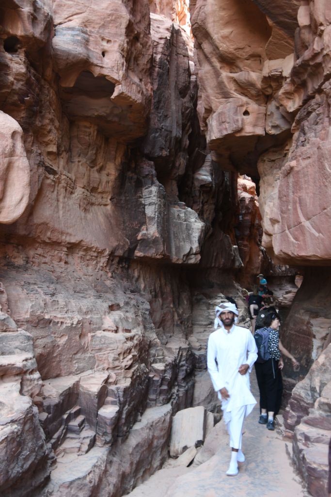 The others bailed on the starlight tea, but I had been looking forward to it all day. Abdullah took me way out into Wadi Rum, away from all the lights from the many many tourist camps. The stars went on to infinity. The Milky Way was clear and obvious. He told me what he called it, but I don’t remember. He collected dead branches from the desert and lit a fire, then placed a teapot on the coals and made us tea. He laid out a carpet, and a pillow so we could get off the sand. It was warm and perfectly silent, pitch black but for the coals of the fire, with stars everywhere. It was a magical evening, but eventually I couldn’t stay awake any longer and asked my Bedouin guide to take me back home.