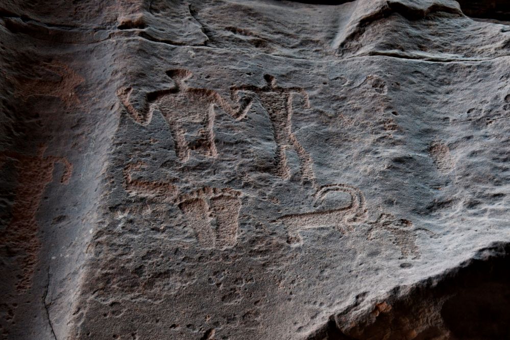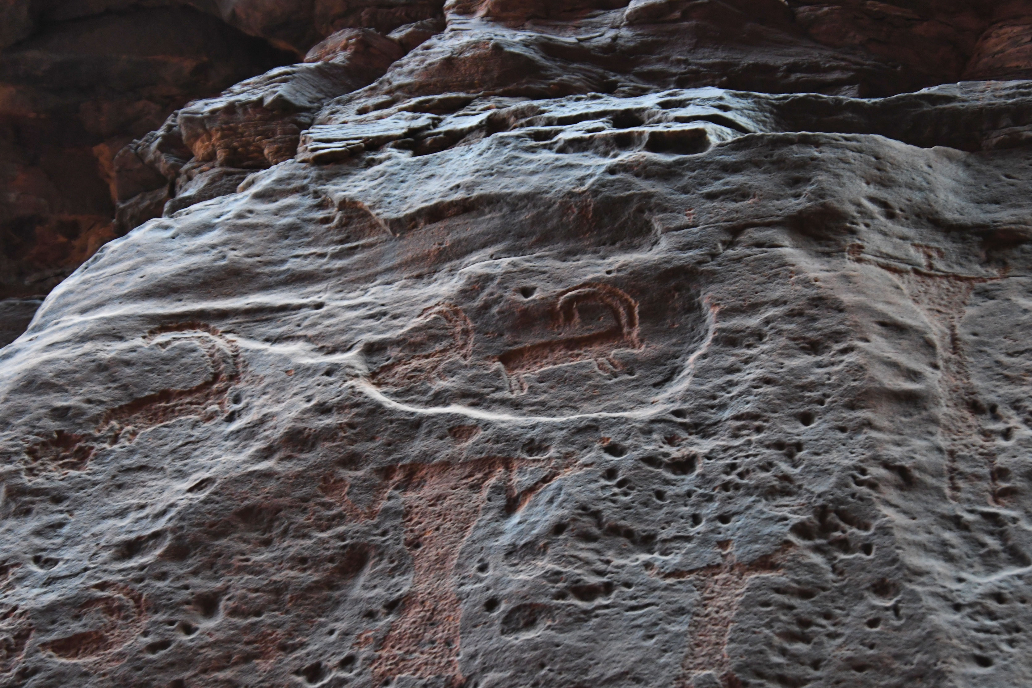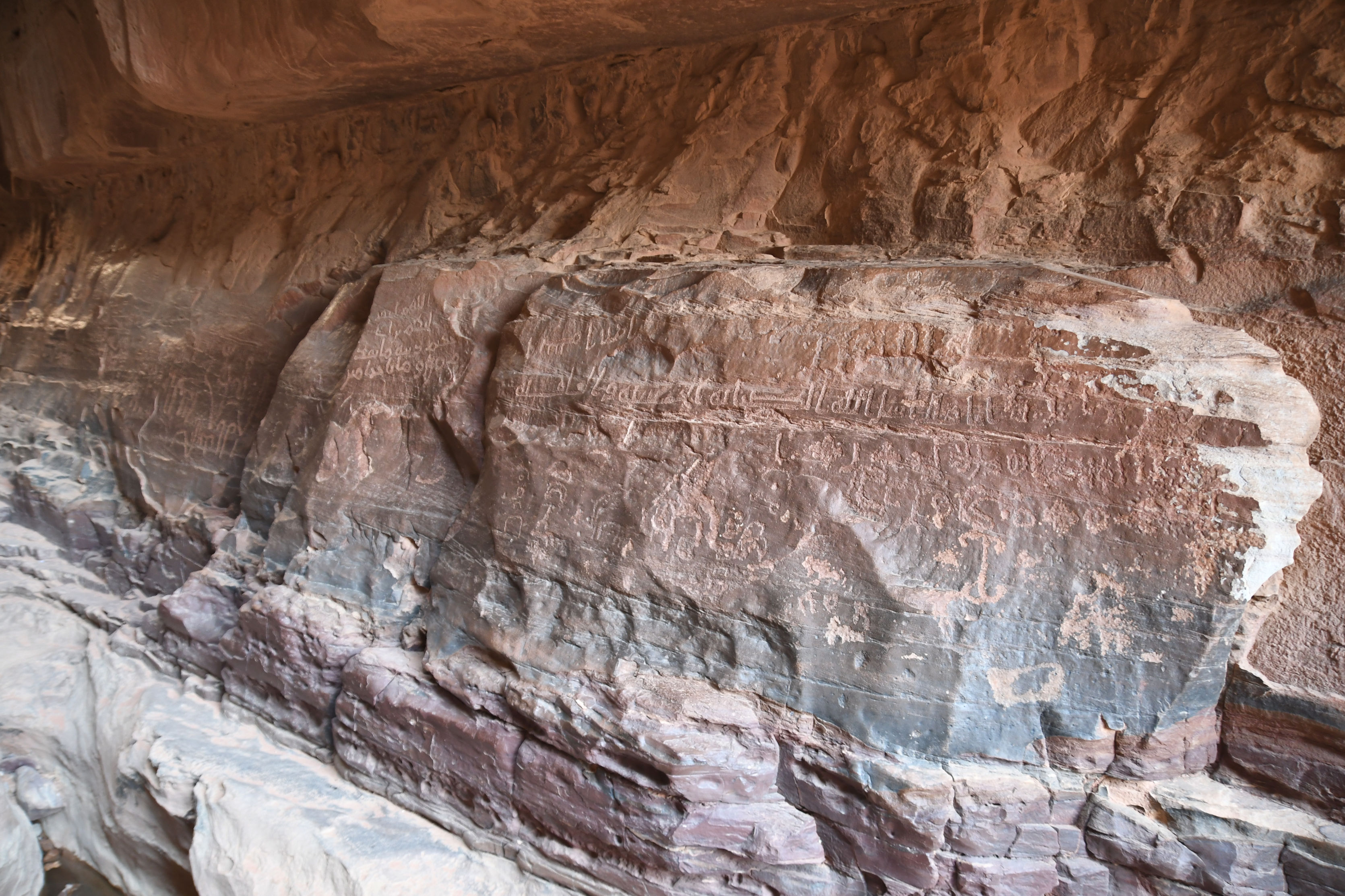 Abdullah took us all over Wadi Rum – to see arches, a spring, and some petroglyphs. We were taken to a place believed to be the home of Lawrence of Arabia. Margaret was not convinced. I’m not too sure either. We stopped for tea in a tent, and Margaret bought frankincense. On the way back to camp, Abdullah drove us over some particularly steep sand dunes, and swerved the truck all the way down and it was like a roller coaster ride. I had my hands in the air and was screaming all the way down the hill.