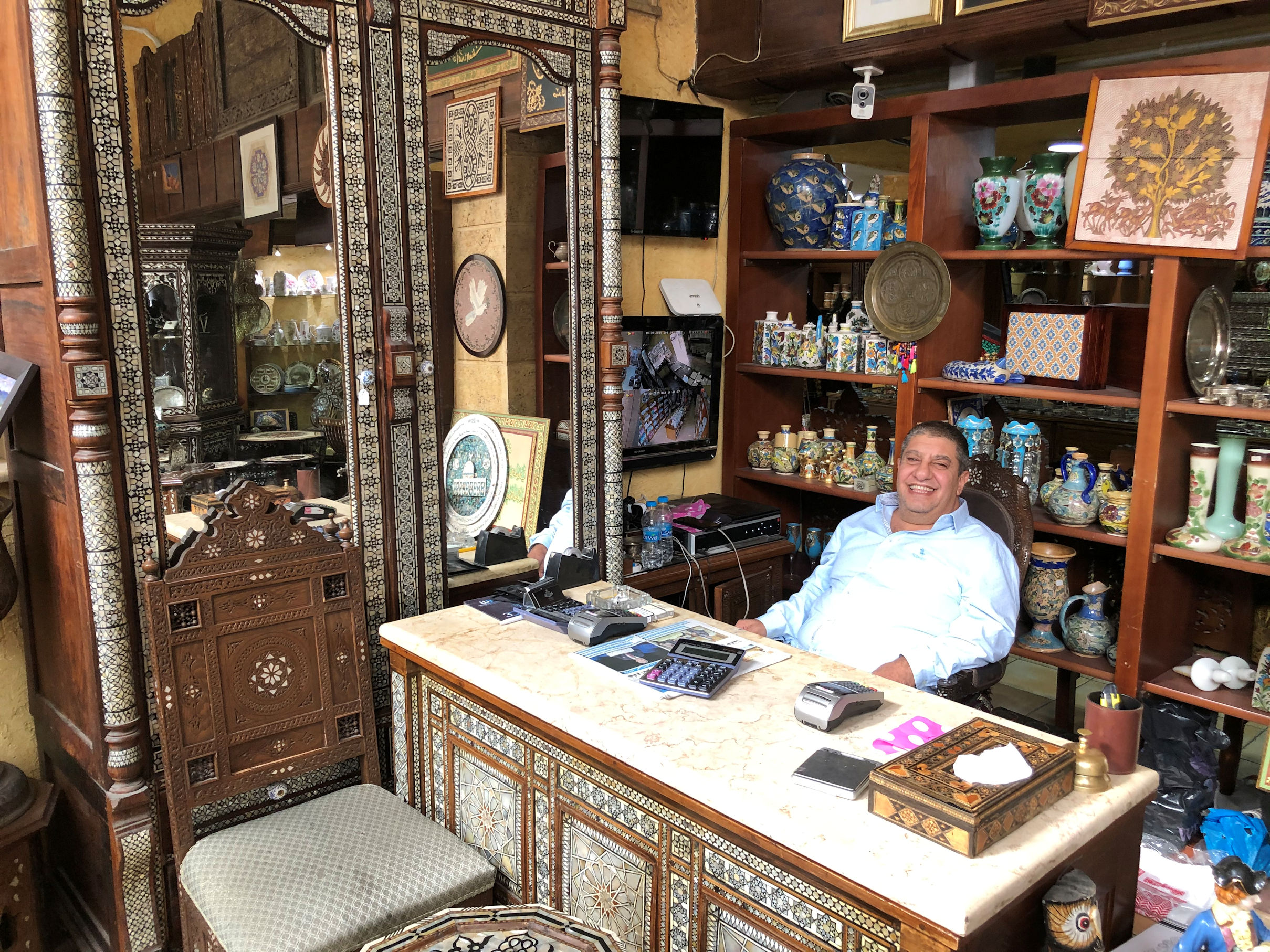 Out on the street, a couple of women stopped Margaret and asked to get selfies with her. Margaret told us this had already happened once or twice in Jordan, but I hadn’t seen it because they are after her, not me. But when we travel, people just can’t resist Margaret’s great California Girl look! I was happy to hide behind Ezat and let her glam up the selfies. We were near a shop where one of Ezat’s cousins worked, so we went there next. It is a whole section of town with gold shops. Maybe twenty different shops, side by side, selling gold jewelry. Margaret negotiated for a little while to get a ring, but eventually didn’t buy it. Of course we were served tea while we were there, and we had a lot of fun joking around with Ezat’s cousin and the other guy working there. He told Margaret she had beautiful eyes, and again, our Cali girl was Queen of the day. She beamed with pleasure and it was so great to watch her shine. I was tired of attention. Ever since Wadi Rum, Abdullah the guide had been begging me to marry him via facebook messenger. I got three marriage proposals while in Jordan. I sure wish I had this effect on American men!
