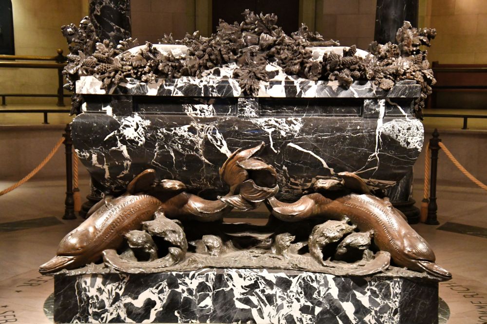 Below the chapel we knew was the crypt of John Paul Jones. I knew nothing of the man so I was eager to read the placards and learn. Jones was born in Scotland, and gained experience on British merchant ships till he moved to the American colonies after running a shipmate through with a sword. He joined the Navy there and immediately engaged in the Revolutionary War, where he had some successes while commanding ships in the 1770s. According to the placards, his “dedication to independence and freedom for the United States and the world, and his fighting spirit, gave to the US Navy its earliest traditions of courage, honor, and victory.” Jones died in France, but in 1906 his body was exhumed and embalmed, and in 1913 re-interred beneath the newly completed Navy Chapel.