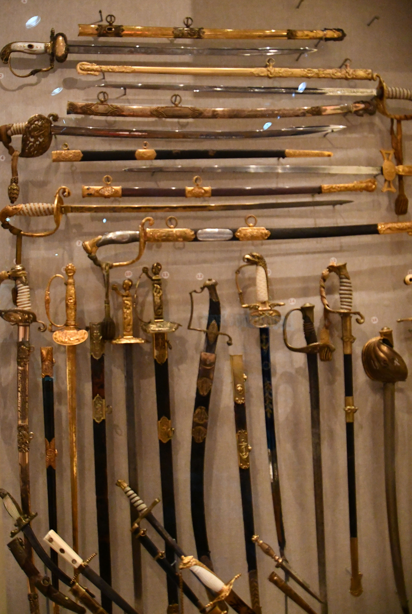 From there we walked to Preble Hall to find the museum. On the first floor, the US Naval Academy Museum contains historic treasures, including paintings and artifacts, such as silver service from various ships. History of the Navy is addressed, as well as specific history and traditions of the Naval Academy. Historical displays began from days before there was a USA, and continued into the space era.