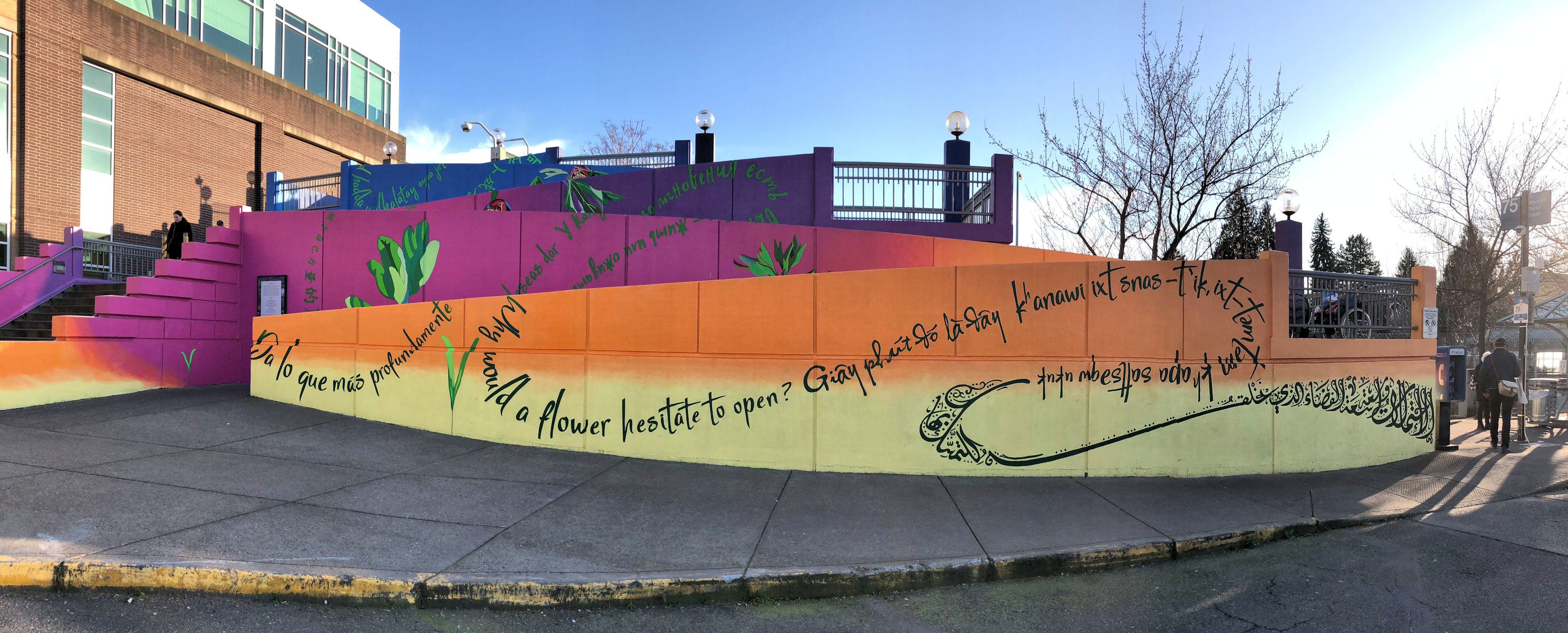 In the stunned shock following the incident in 2017, Portland reacted powerfully. At the site where this all happened, the TriMet train stop in the Hollywood neighborhood, people covered every square inch of the concrete ramp in chalk messages of love and gratitude and support for the victims. Flowers and photos and handwritten messages were heaped against the wall. The city decided to make this space into a memorial. In all my emotion the last couple weeks, I couldn’t stay away, and spent one evening there, reading every word and taking photos. Please enjoy them.