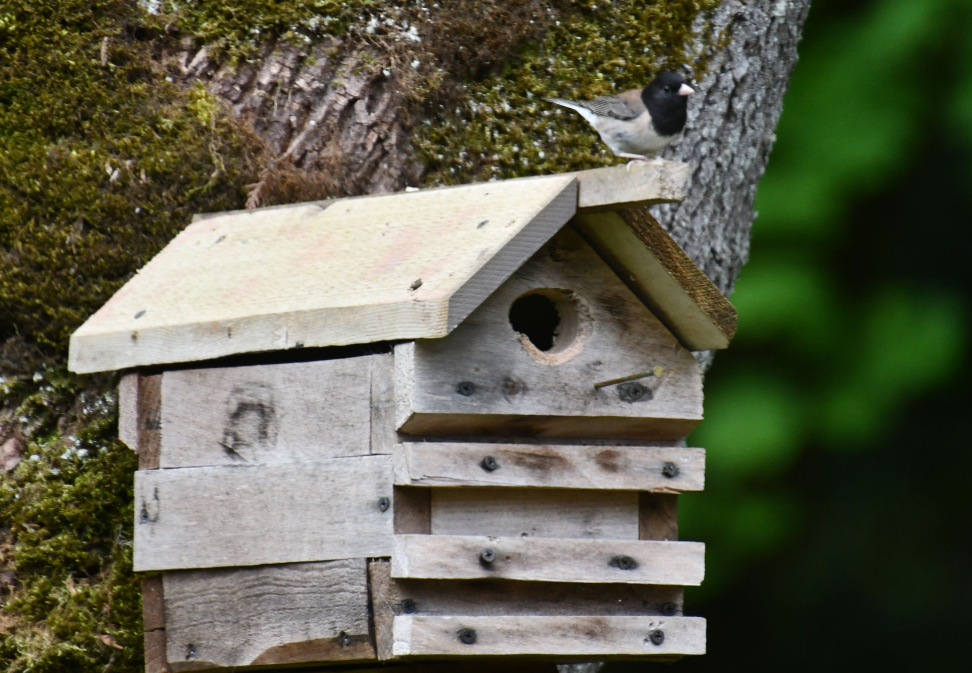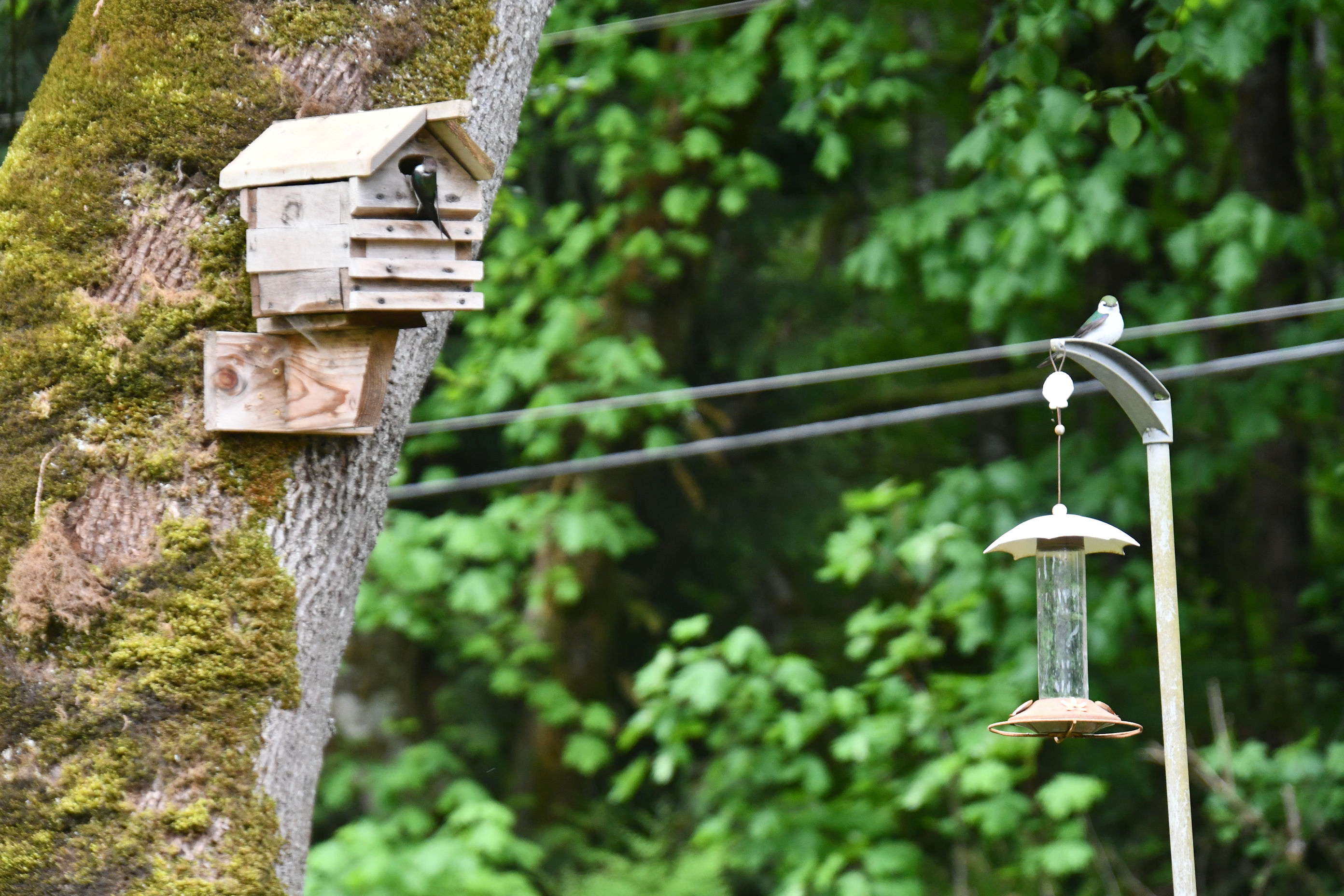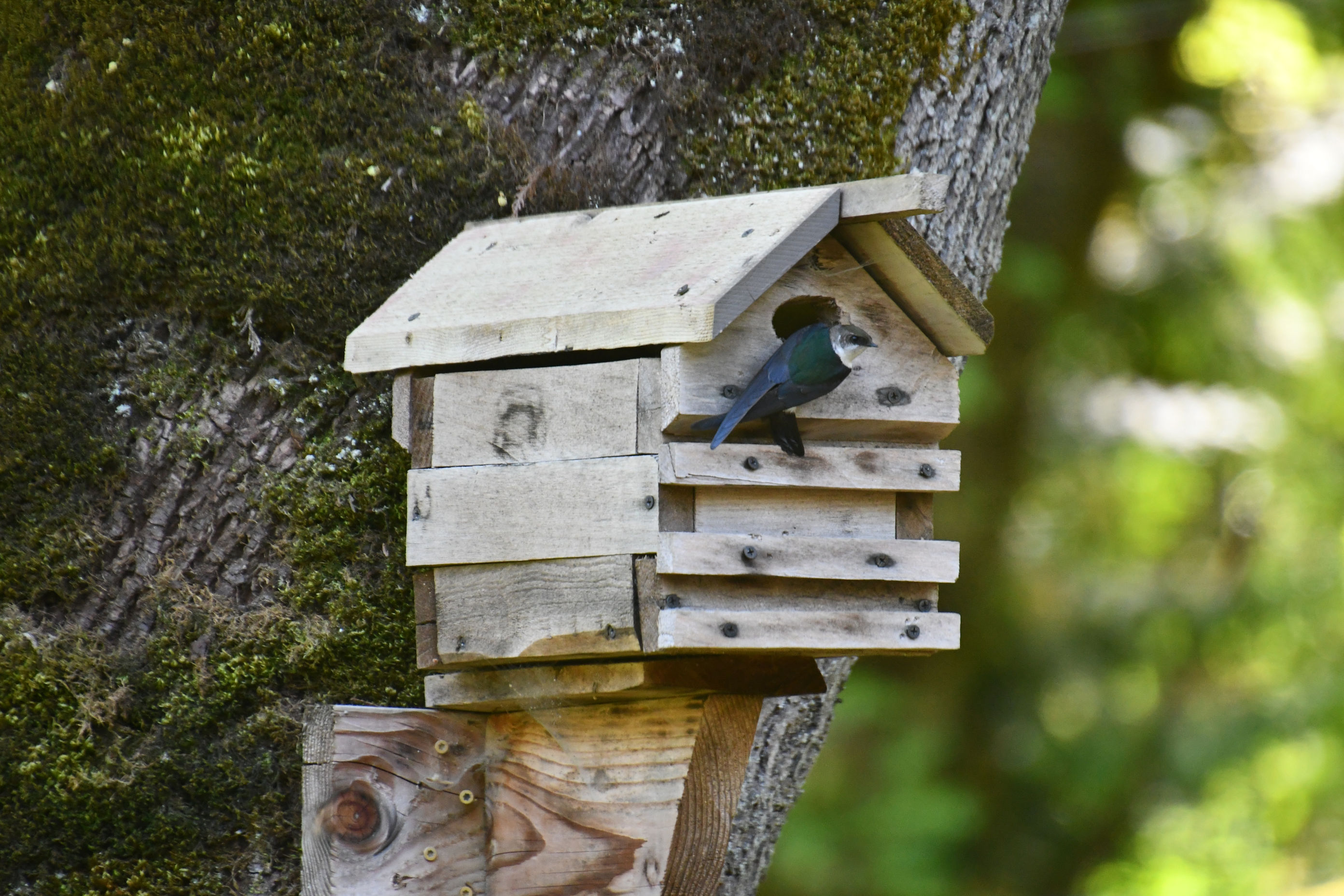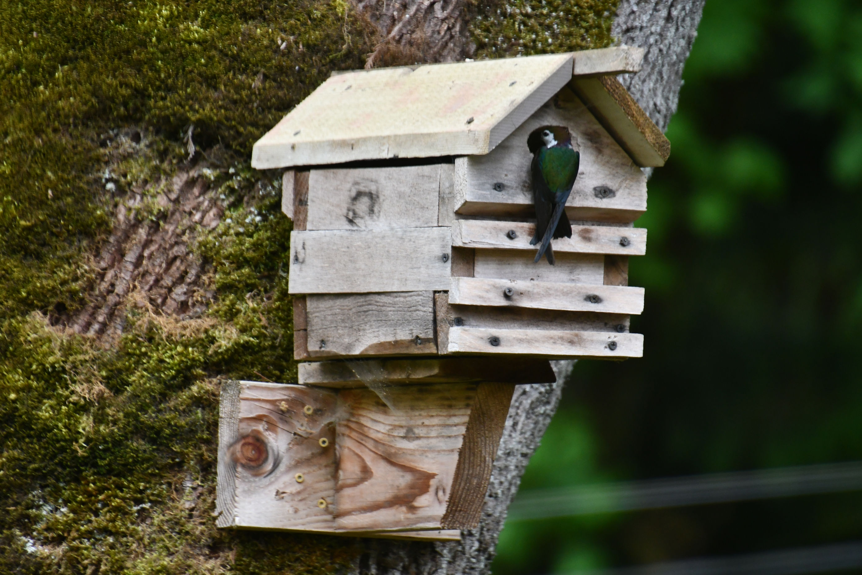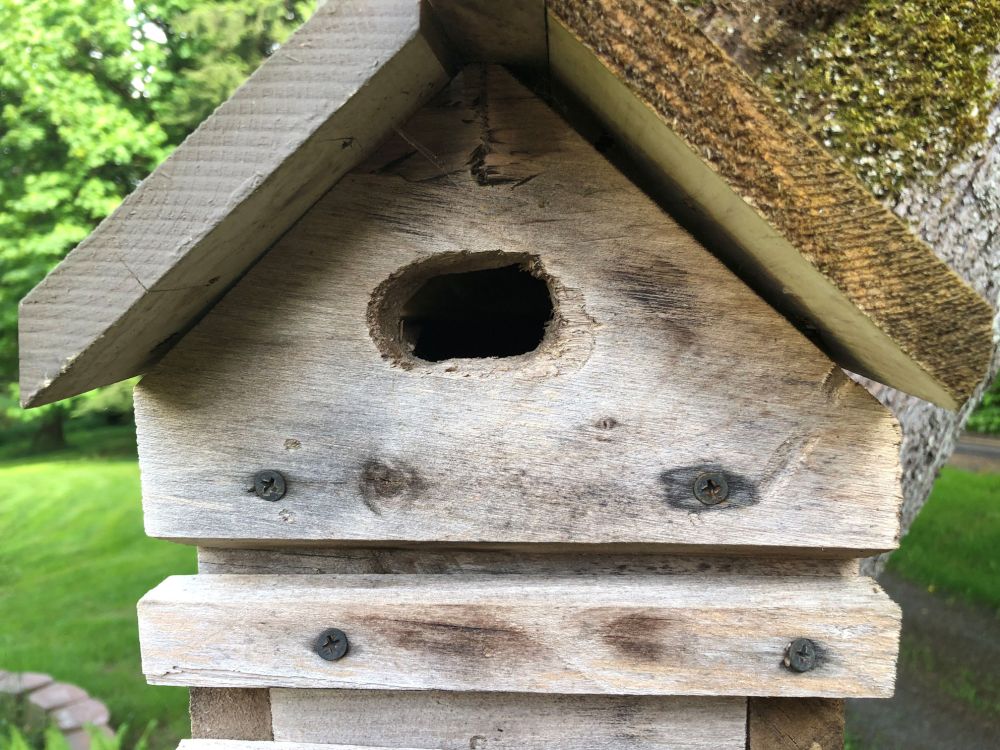 And that was the last time any Violet-green swallows came to check it out. Darn. Well, I did get my human smell all over it again, by trying to clear cobwebs. I just can’t help myself but clean things. Also, there is fresh cut wood smell too. Maybe next year.