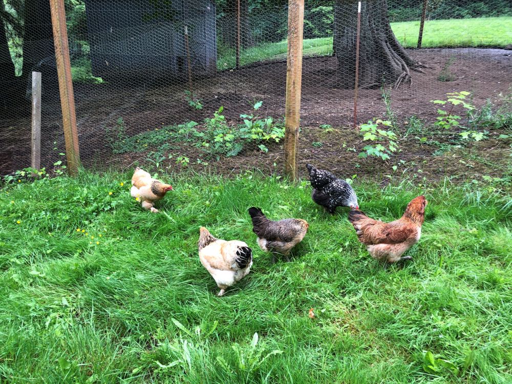Newly installed on the other side of the big pen. They are very very happy in the grass!