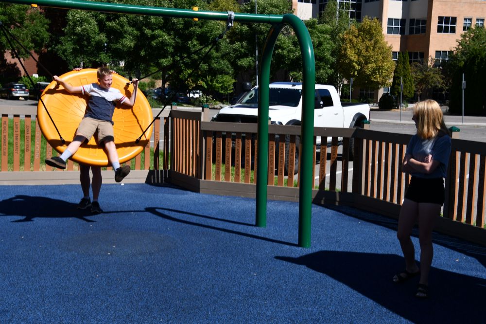 Tanner found a parking lot and since it was right next to a giant playground, we checked it out. The kids were mostly too big to play there, but since we adults were goofing around on stuff, the kids decided to make the most of it.