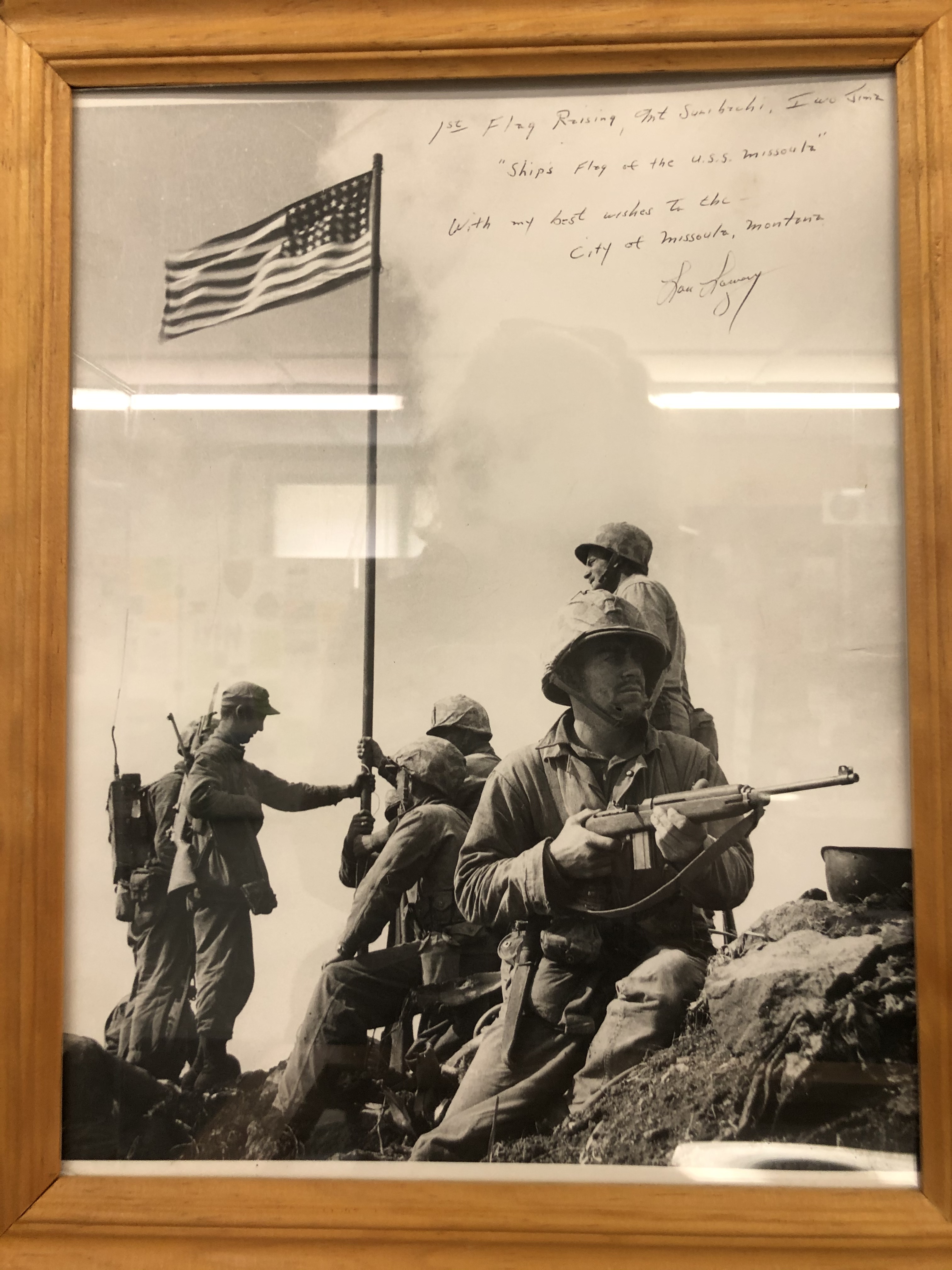Today the museum consists of 32 acres holding historic military buildings and within some of those buildings it holds artifacts of military history, particularly as it relates to this region. Due to COVID-19, the main building is closed, but a lot of the grounds remain open. My best discovery of the day was finding a photo of the original raising of the flag at Iwo Jima, not the famous photo that was staged, and learning abut Louis Charlo. Charlo, a member of the Salish tribe and born in Missoula, was an 18-year-old Marine serving aboard the USS Missoula. He was one of the original few who took a flag from the ship and attached it to a pipe, and erected it at the top of Mount Suribachi in 1945. The photo is signed and gifted to the city of Missoula by the photographer, Louis Lowery. Charlo was killed a month later.