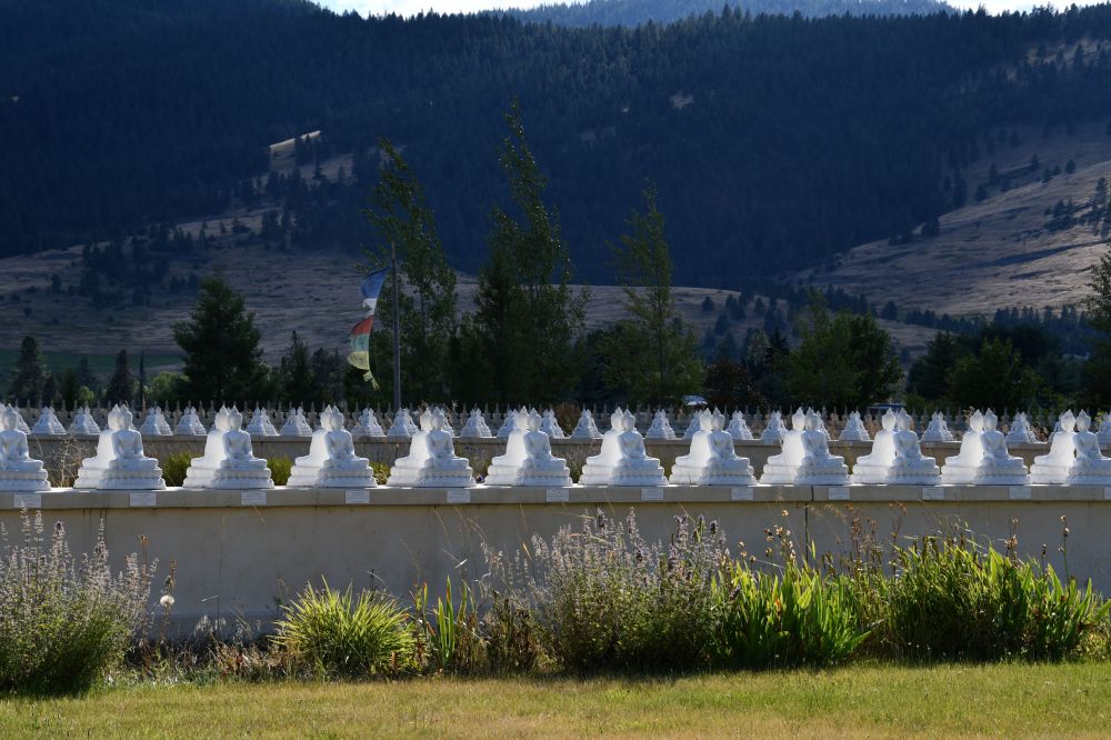 North of Missoula, on the Confederated Salish and Kootenai Tribes of the Flathead Reservation, outside of the small town of Arlee, Montana, is the Garden of One Thousand Buddhas. Gochen Tulku Sang-ngag Rinpoche, a meditation master and scholar of Tibetan Buddhism, had a childhood dream about a peace garden in the mountains. As an adult, he came to this area to teach, and recognized the landscape from his dream. One of his students purchased the area from the tribe, and donated the land to Gochen Tulku. In 2000, volunteers went to work transforming it.