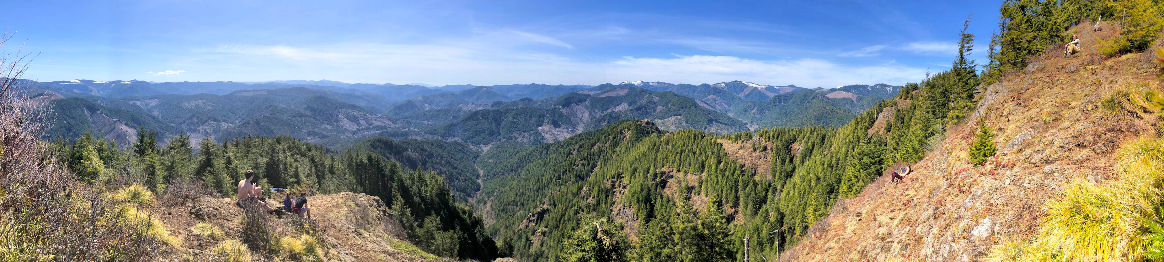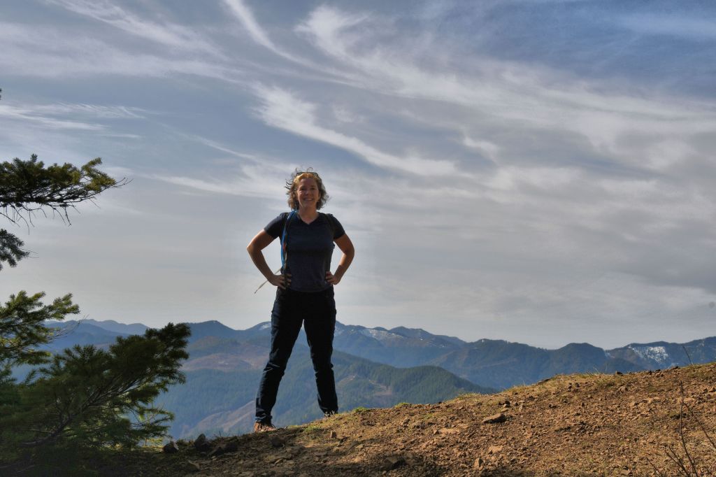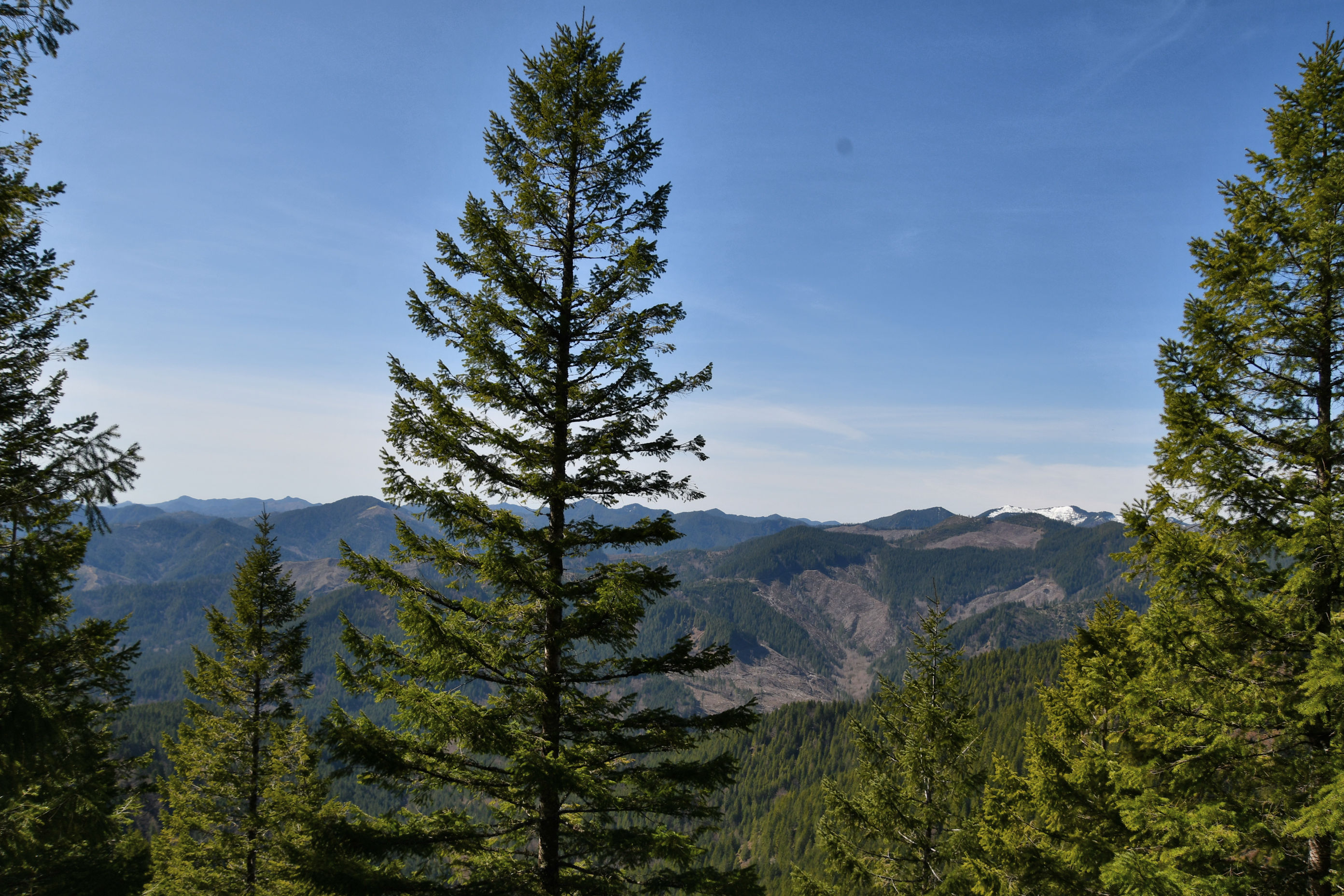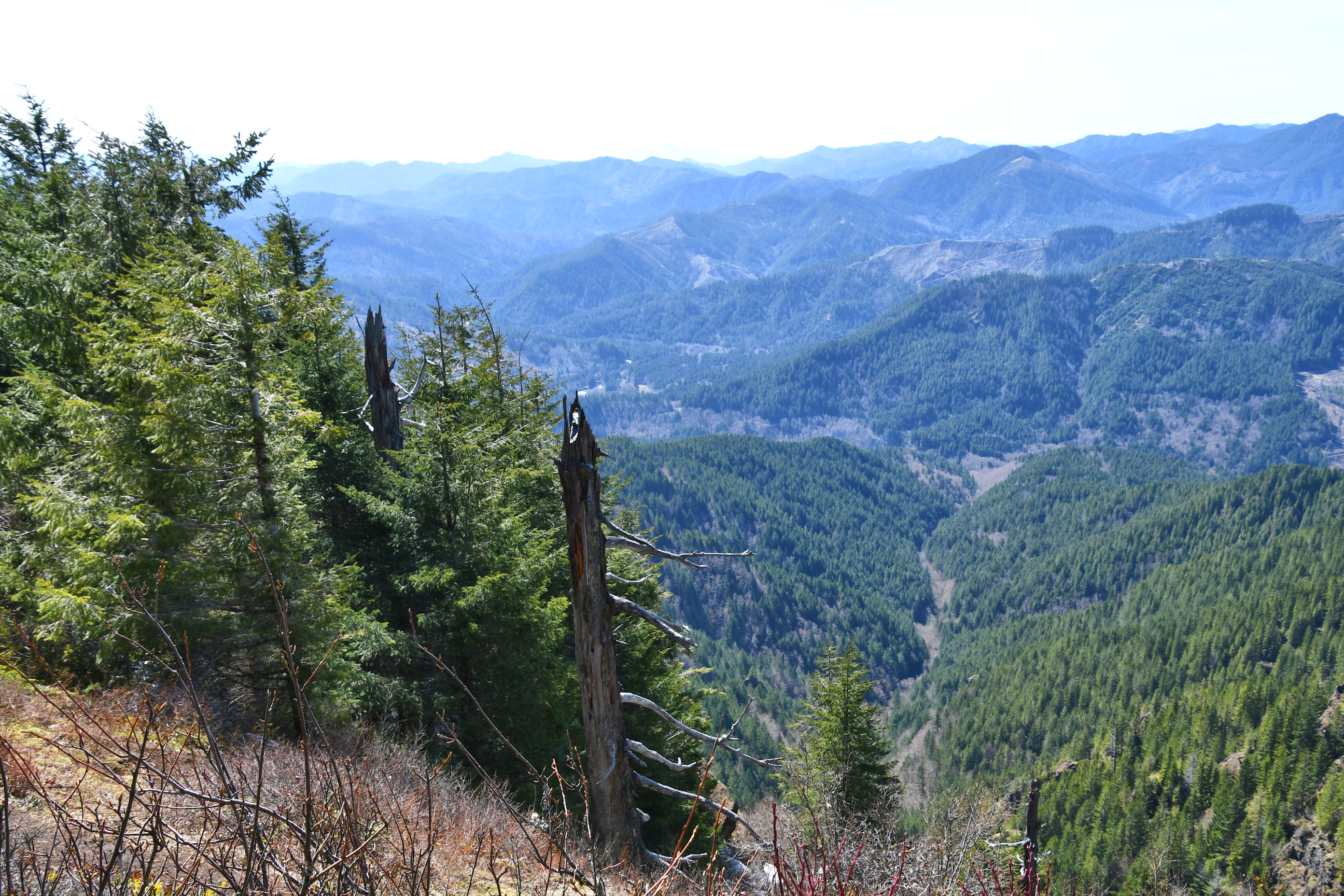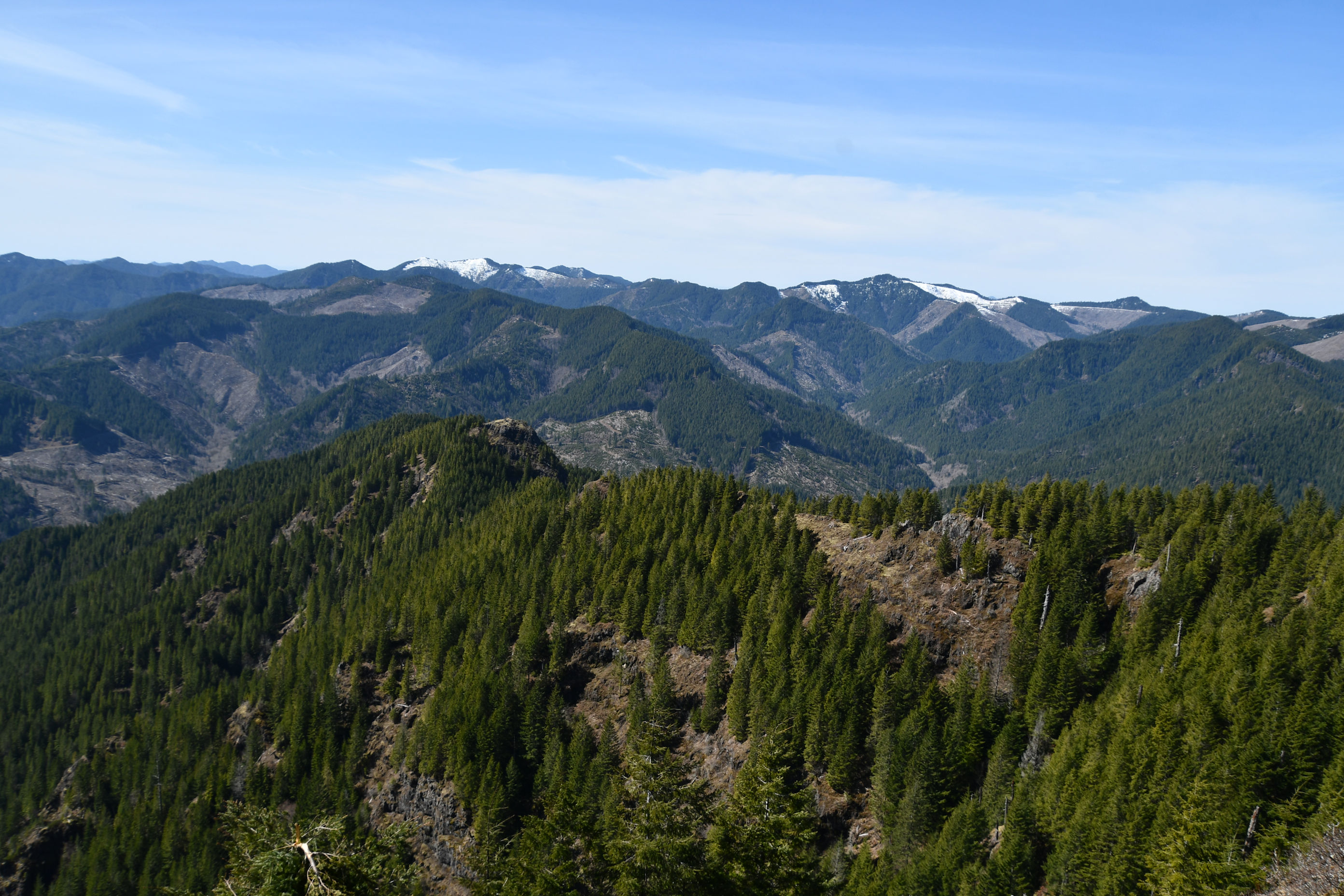 Saturday Pedro and I got an early start and drove West into Tillamook State Forest. He is diligent about his training, but I’ve neglected mine, and when I chose two hiking options near each other: King’s Mountain or Elk Mountain, Pedro recommended the 5 mile (8 km) hike, which is shorter. In retrospect, I am grateful, because the 2.5 miles (4 km) to the summit climbed 2,520 feet (768 m) and two days later I was still feeling it.
