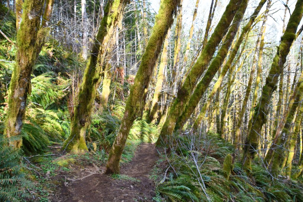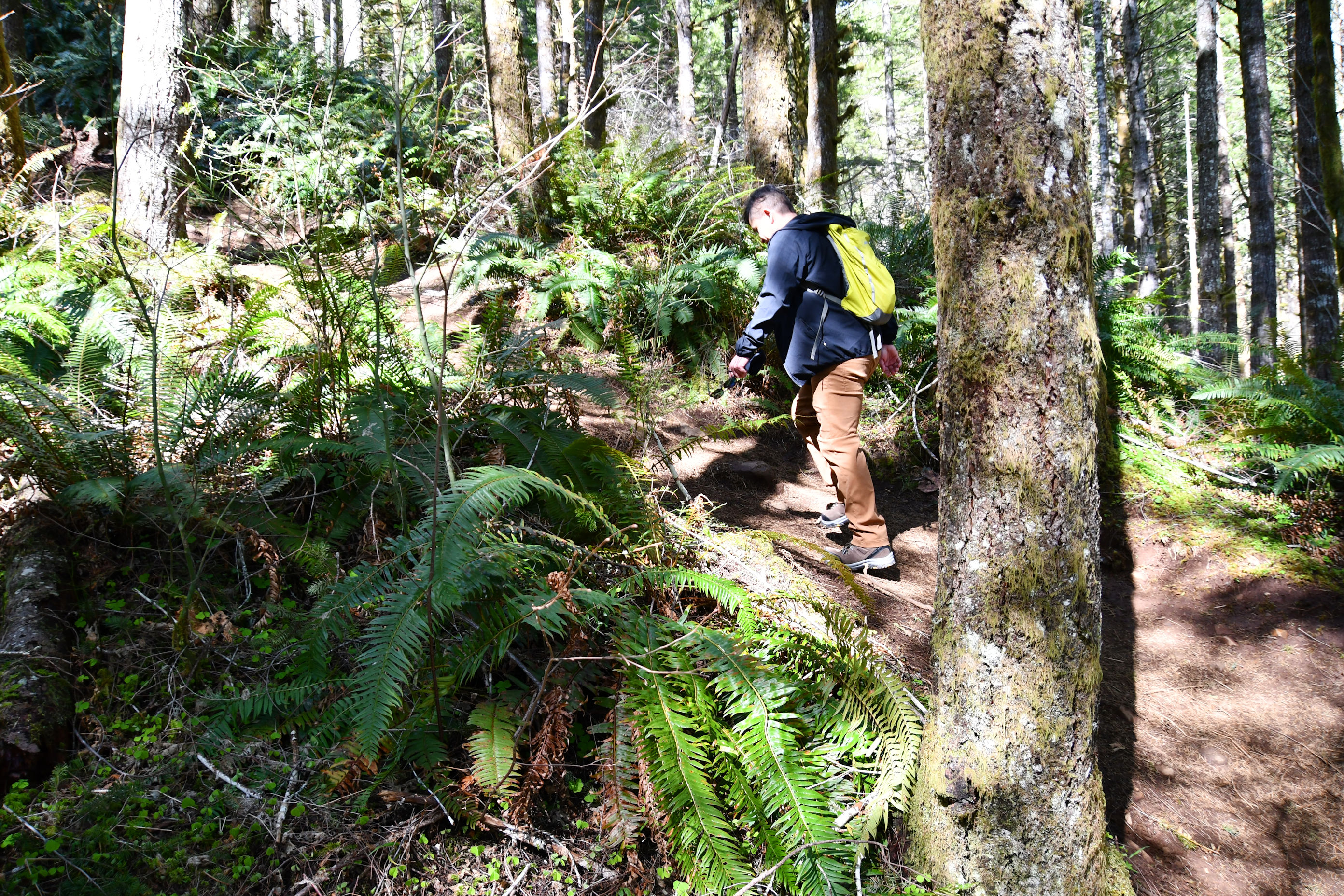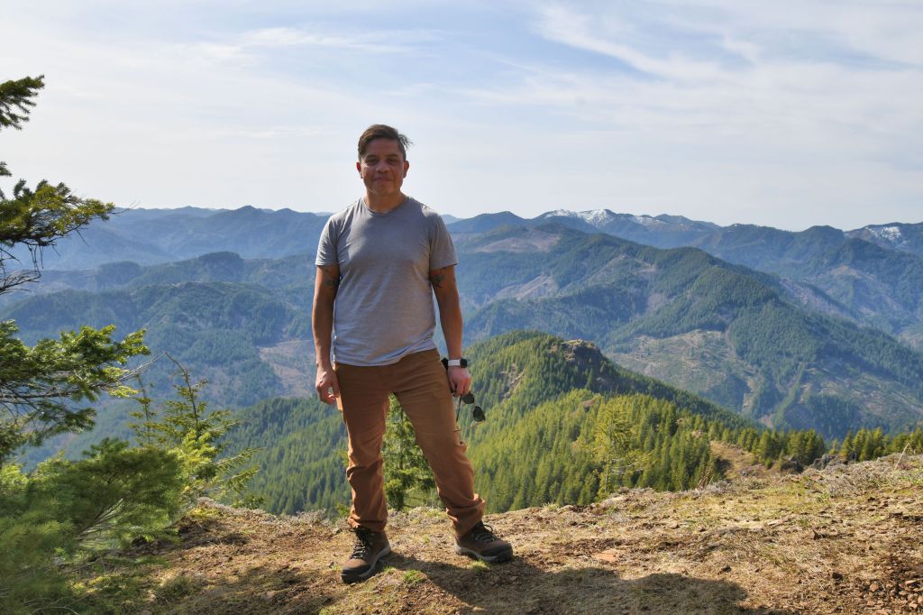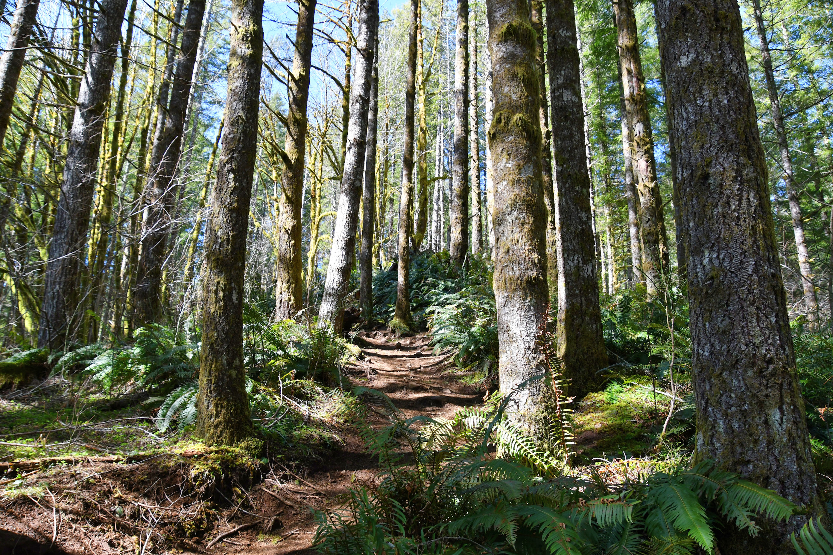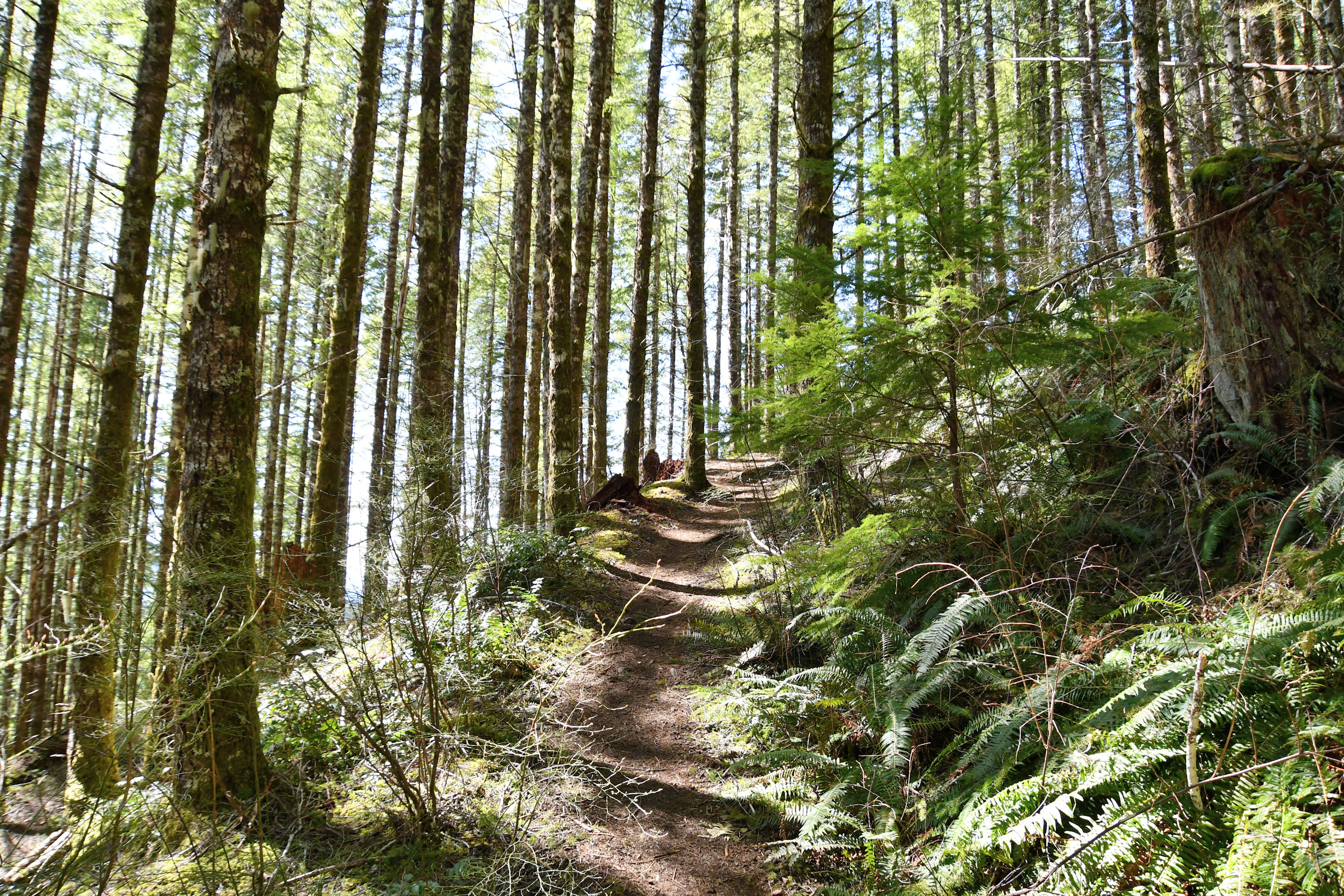 Saturday Pedro and I got an early start and drove West into Tillamook State Forest. He is diligent about his training, but I’ve neglected mine, and when I chose two hiking options near each other: King’s Mountain or Elk Mountain, Pedro recommended the 5 mile (8 km) hike, which is shorter. In retrospect, I am grateful, because the 2.5 miles (4 km) to the summit climbed 2,520 feet (768 m) and two days later I was still feeling it.