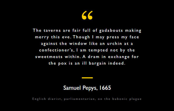 I could relate to Samuel Pepys, wistfully wishing I could join the people still gathering together, those people convinced that the virus was at best a trivial concern and at worst a hoax.