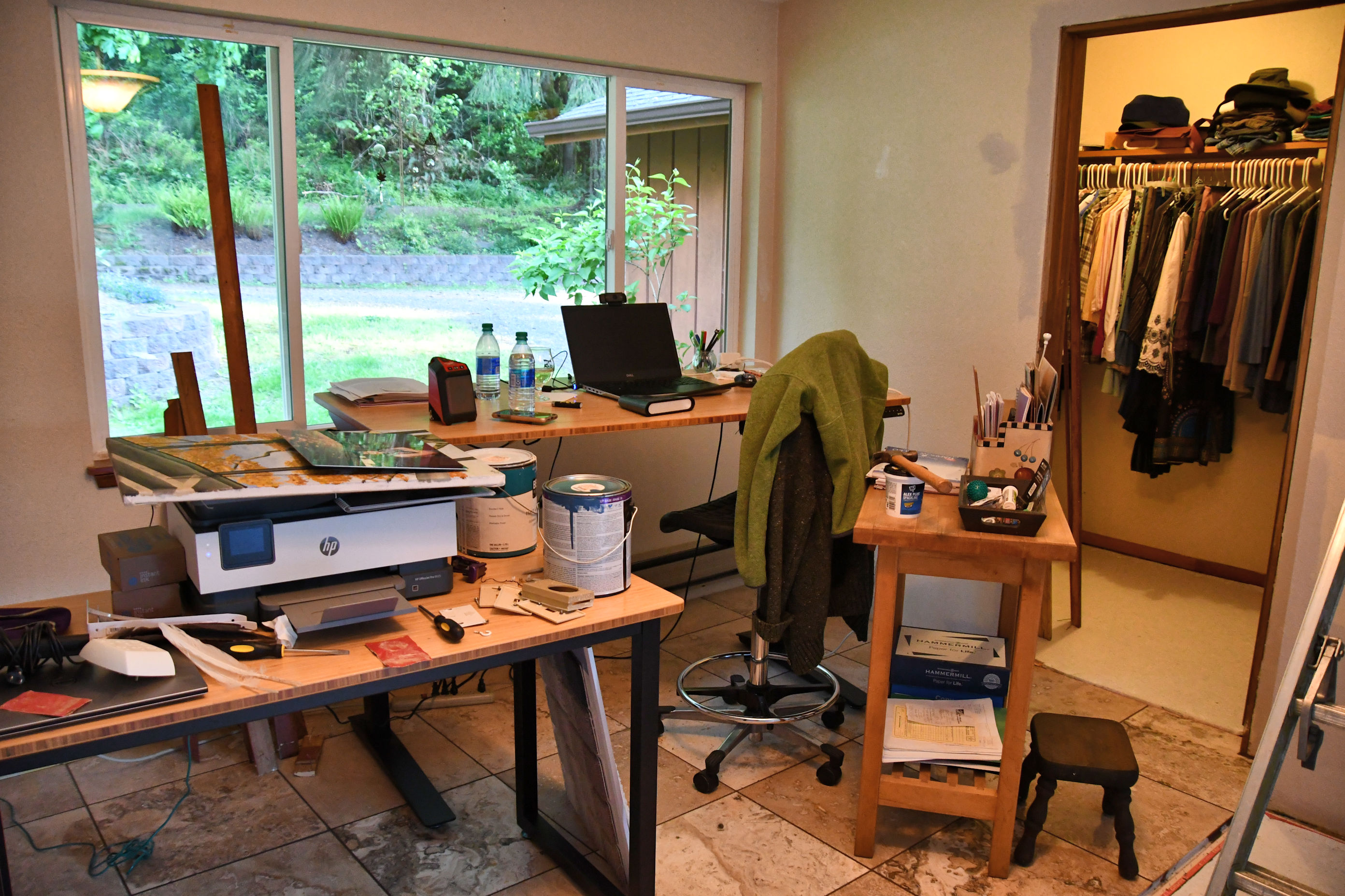I took a photo of the three patches on the wall and sent the image to friends, asking for a vote. Everyone picked the middle one. The light taupe. Everyone except one artist friend of mine. He and I liked the dark taupe best. Tara mentioned how much time I spend in this room, and suggested I keep it light and bright. In the meantime, I had noticed the walls in Pedro’s house were a similar colour, and I thought his place was very tasteful. He had a paint sample from his and brought it over. We painted it between the two taupes. Even darker! Reluctantly, I decided for the light colour in the end. Not sure if it was the choice that I like the best, but I think it turned out great and it’s too late now.