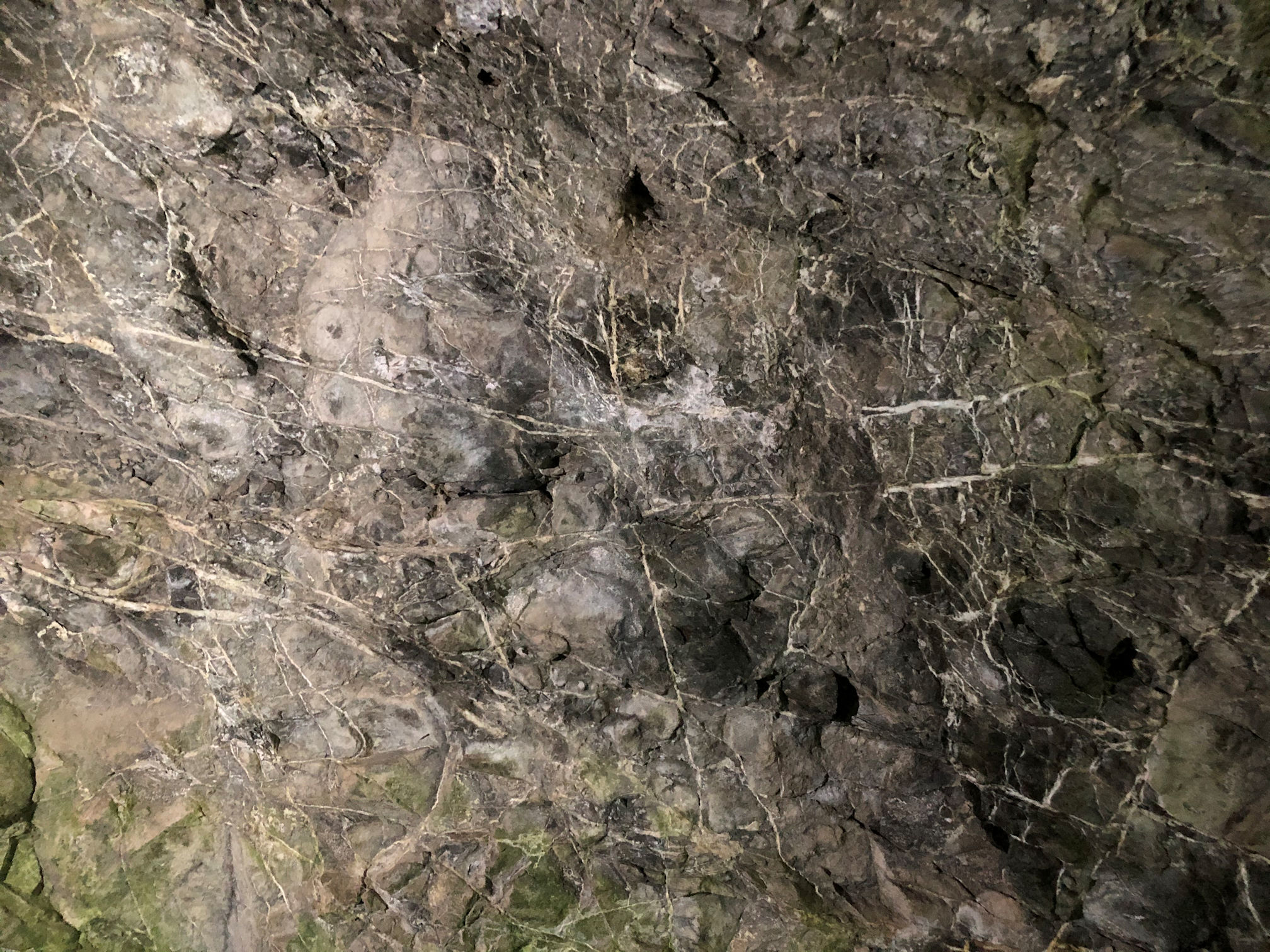 I asked Pedro to use that same light and direct it at the sides of the cave, which I found fascinating. These white streaks are the vein of quartz that are tantalizing to miners, and the likely reason why this cave was dug in the first place.