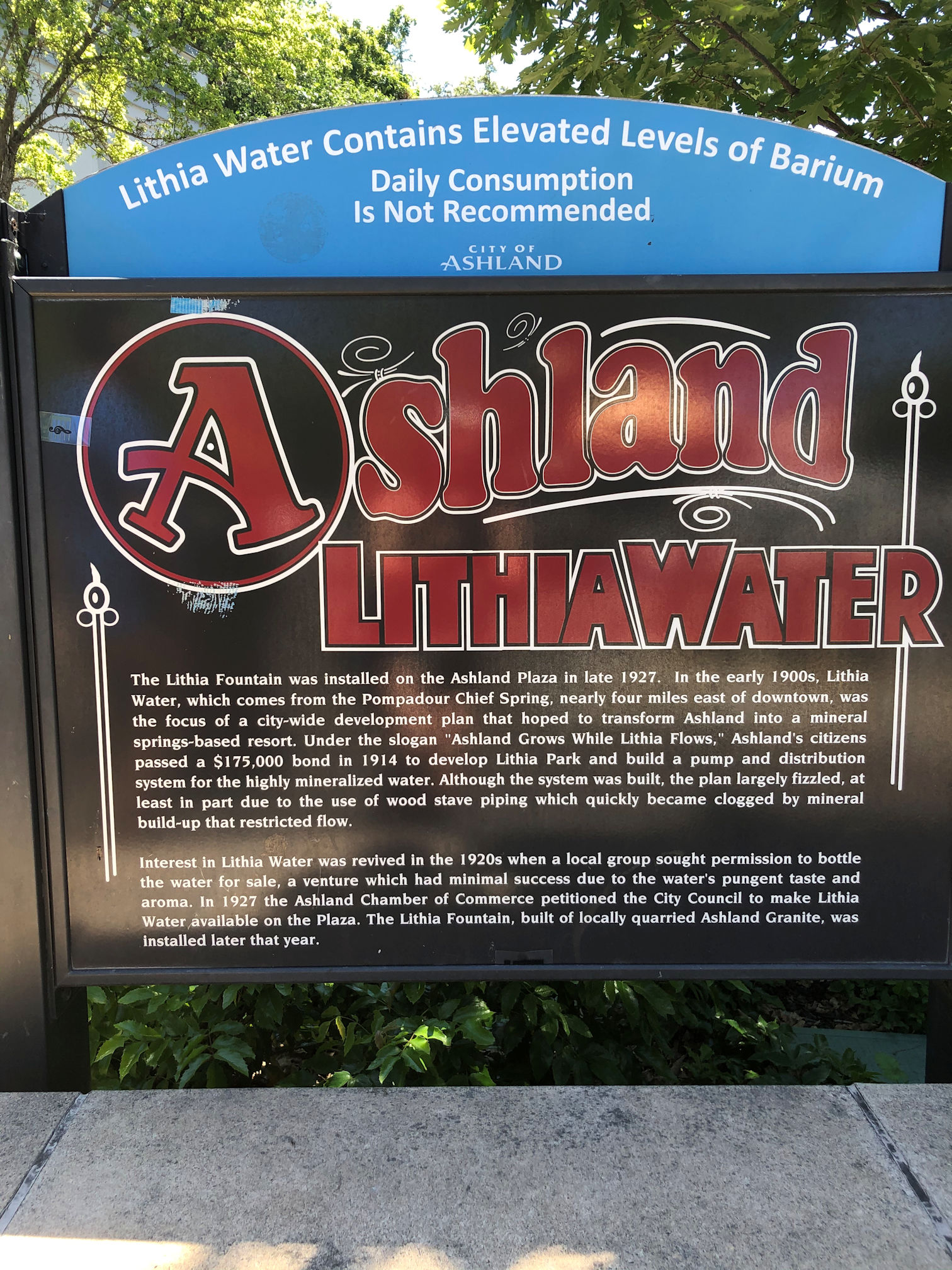 This sign downtown tells some of the history of Ashland’s Lithia water.