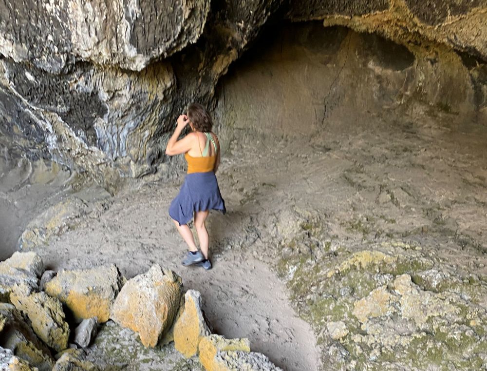 Pedro had explained to me that there are lava tubes that people can explore here – another thing I didn’t know before coming. We reported that our interests were the caves, and Modocs, and the park ranger handed us additional brochures with general park information, cave exploring information, and a brochure with a brief history of the Modoc people who lived here and the war that occurred on this land. He asked us some pointed questions about our history of visiting caves, in order to protect the park’s bats from White Nose Syndrome (the goal is not to wear shoes from one cave into another cave, that way people don’t accidentally spread the disease), determined we were safe, and sent us on our way.