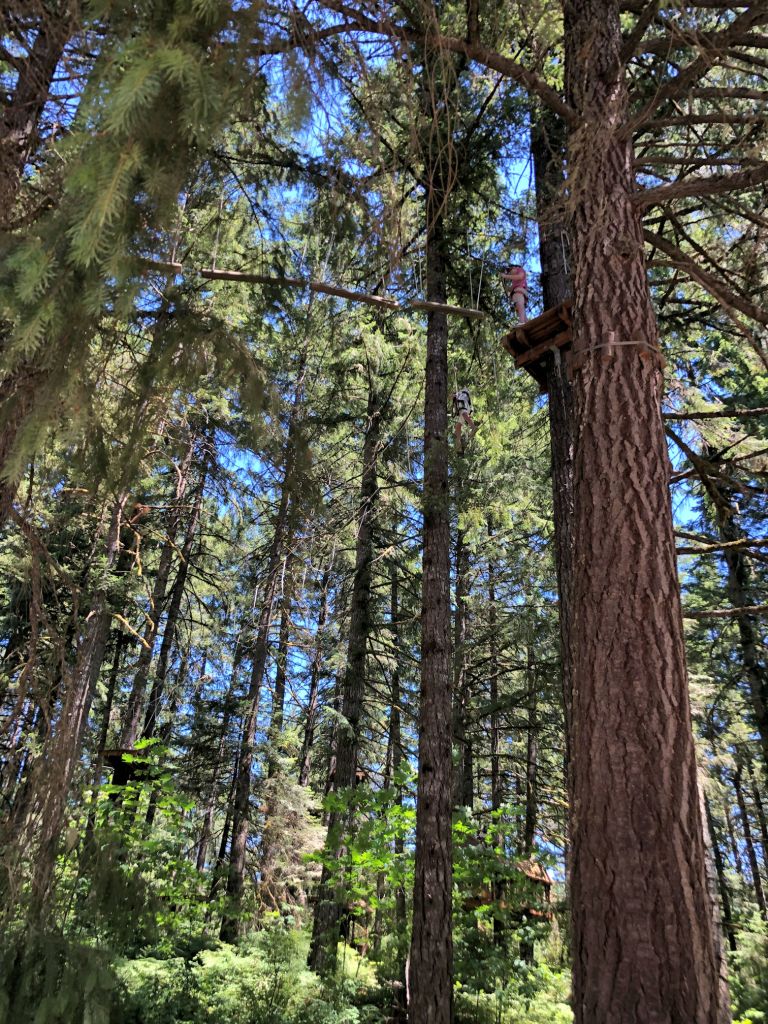 It was SO SCARY! Each time I was in the middle of a course, I told myself there was no way I could do another one, and my whole being focused on getting to the end of the current one. I watched a woman on a course in the trees above me become paralyzed halfway through, and needed a Tree to Tree staff member to coax her to the end. The man was great, giving her awesome encouragement, and she did indeed inch her way to the end of that segment. Being in the middle of a course, however, he stuck with her and got her through the subsequent segments until finally she was out of the trees. The course she was on made my vision spin. From below, it looked terrifying.