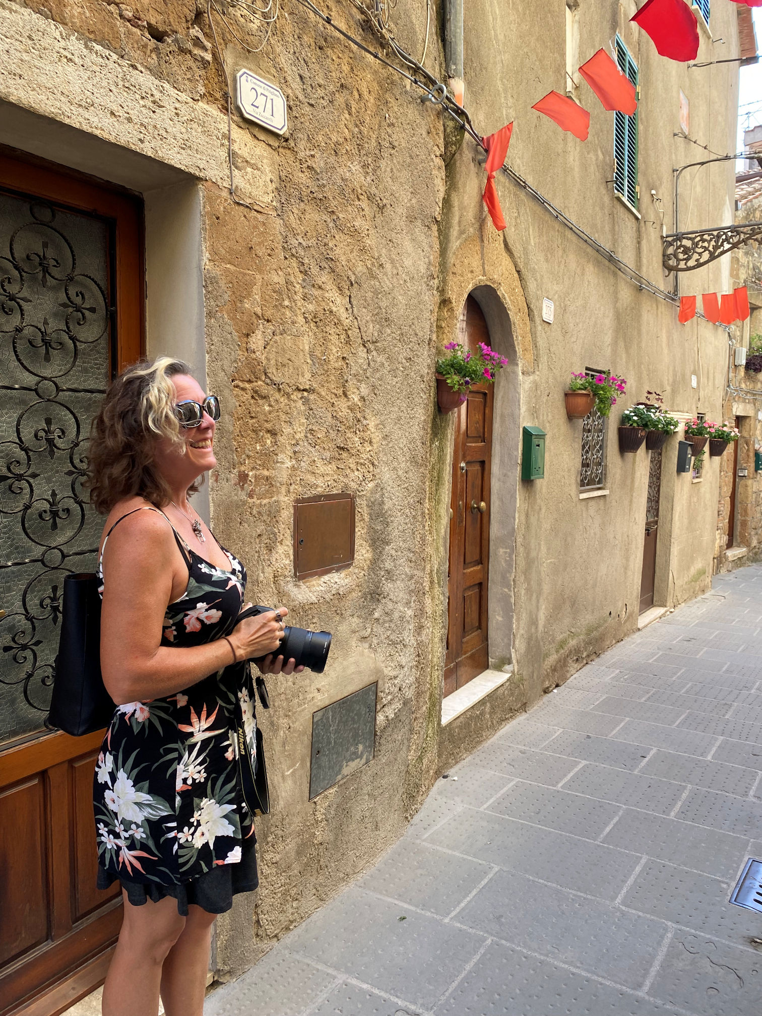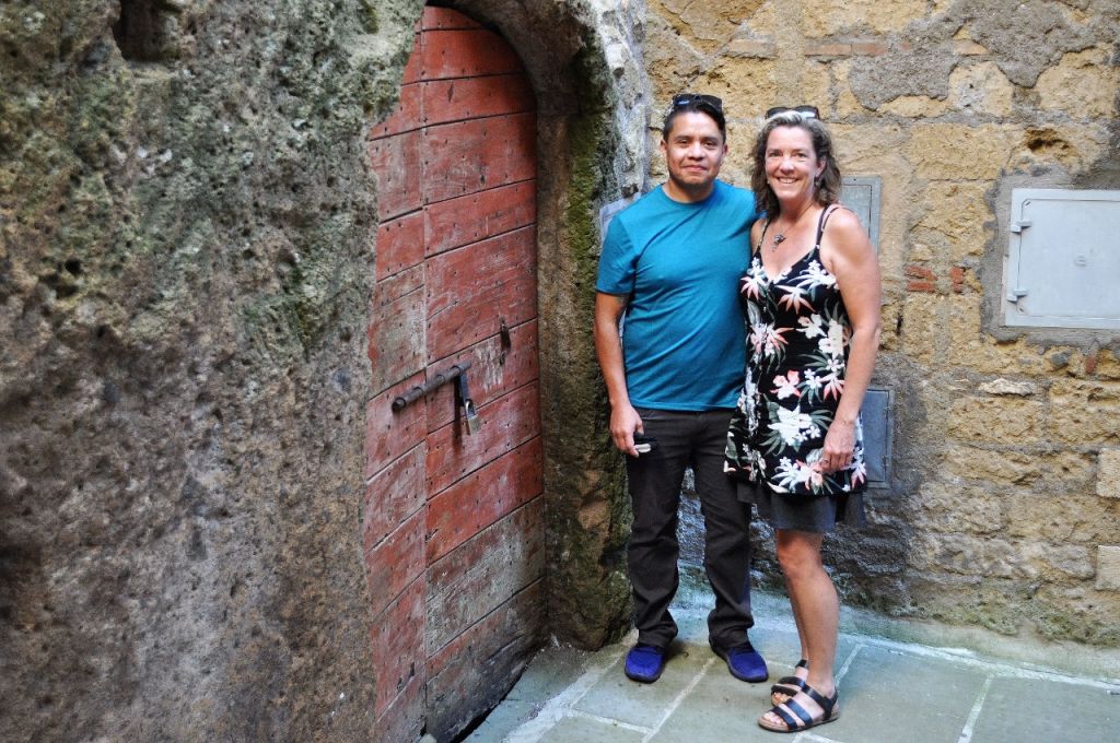 Manja took us to the tufa towns of Pitigliano and Sovana in Tuscany. We had not looked them up and did not know what to expect and were ready to be surprised. When I got my first look, I was not surprised, but astonished. We crested the final rise and on descent into the canyon got a look at the town of Pitigliano rising from the top of a tufa mountain. I actually gasped out loud and started gesturing spastically to pull over and saying something like, “Oh! Oh! Ah!” while Manja smiled and made her way to the wide spot along the narrow road that she had been planning to stop at anyway.