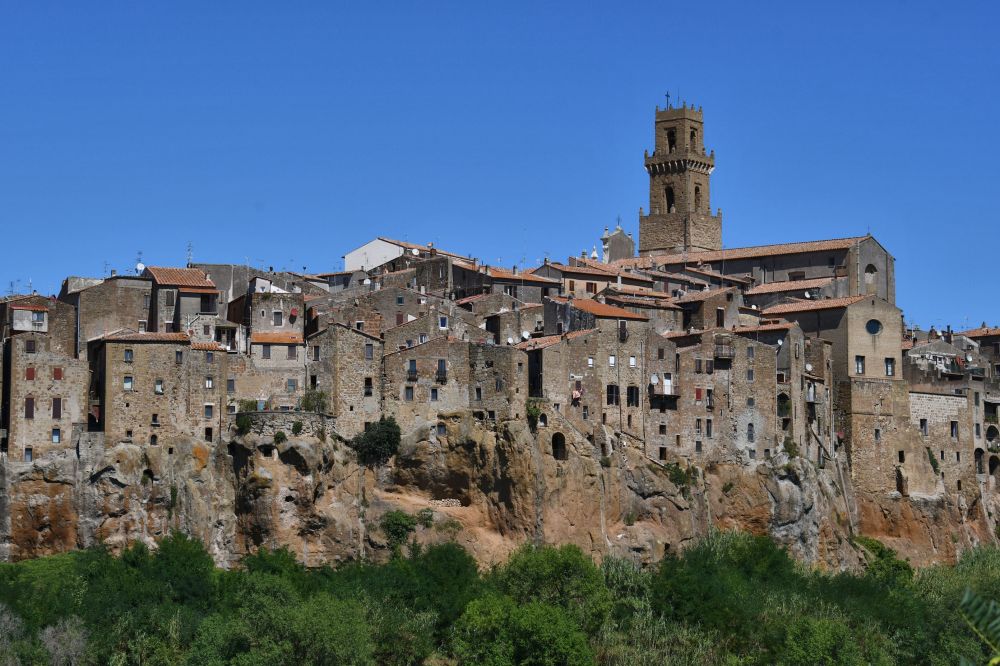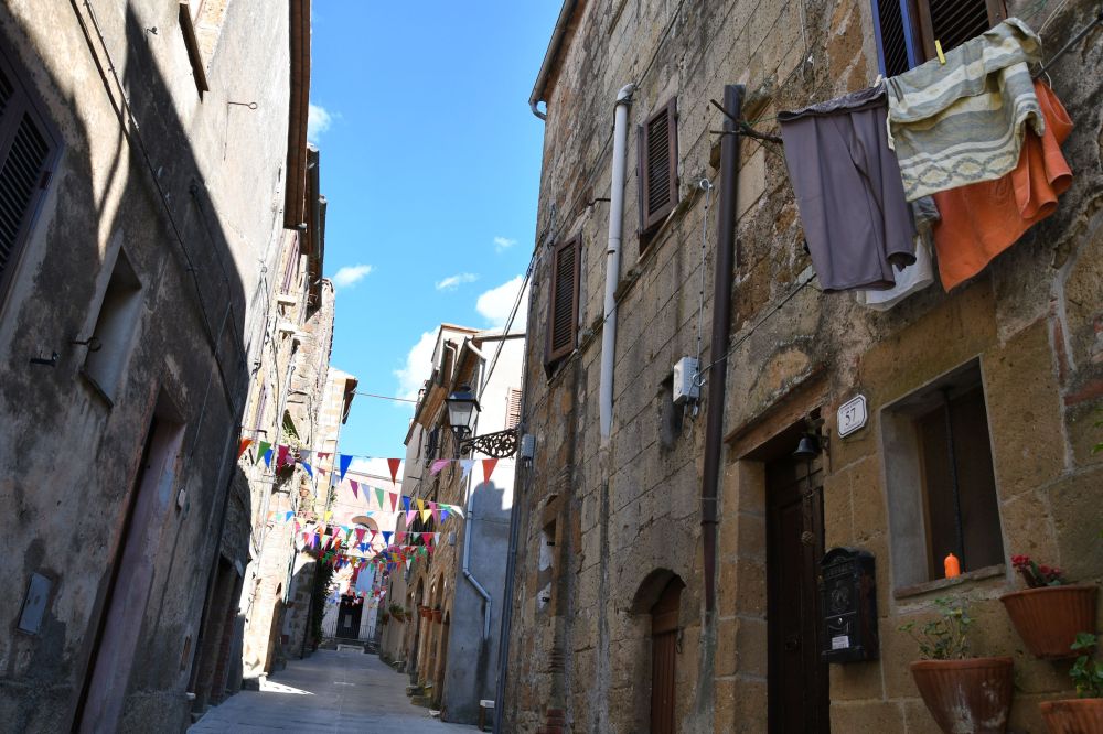 Sovana was a thriving Etruscan city in the 6th century BCE and is famous for its fierce resistance to Roman assimilation – though of course it eventually succumbed. Even after being colonized, the villagers stubbornly clung to their own culture, including their own art, language and writing, until the 1st century BCE, which was uncommon for Roman colonies. Sovana is much smaller and less developed than Pitigliano, and especially appealing for that reason. It also retains much of its medieval character, which makes it unique. The village is arranged around a single small street encompassing a single gorgeous square, with St. Peter’s Cathedral at one end and the fortress La Rocca Aldobrandesca at the other.