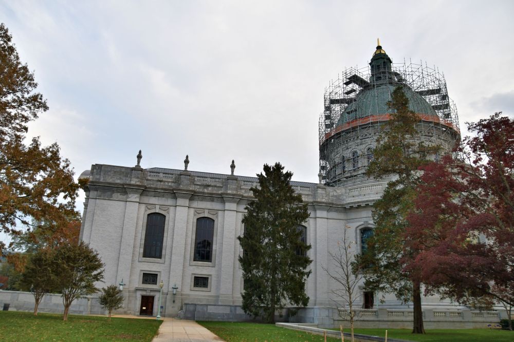 I had forgotten all about the new copper roof on the Naval Academy Chapel, but luckily we were there in time to see it coloured like a penny and not green yet. On my last visit here, the dome was bright green and covered in scaffolding, getting ready for repairs. The new copper has already darkened and will eventually turn the bright green patina once more.