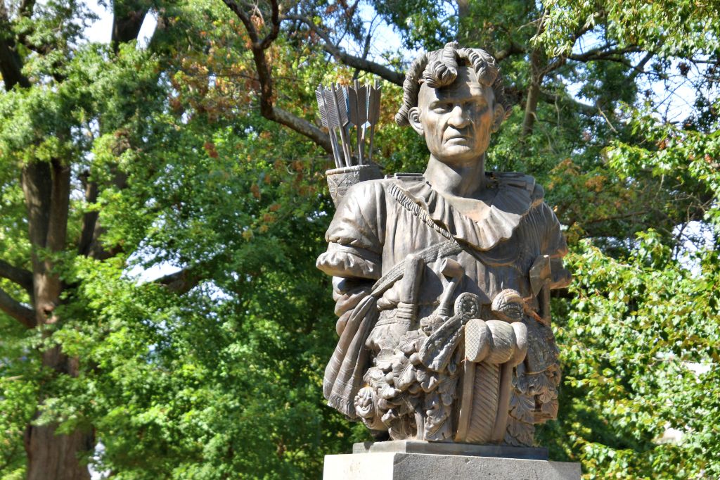 *My caption became so long that I decided to turn it into a paragraph instead. This is a bronze sculpture modeled after the figurehead of the USS Delaware. His pedestal says “DELAWARE,” and people who know about the Delaware Tribe get confused about who he is. My original assumption was that this was a Chief Delaware or something. But even more confusing is that 19th century midshipmen of the Naval Academy did not like Tamanend’s peaceful nature (he is known for seeking peace, and signed a treaty with William Penn to give up his lands and create the state of Pennsylvania), so they renamed the statue Tecumseh, after the Shawnee Chief who encouraged tribes to unite and fight against colonization. Since the midshipmen were inventing a persona for the bust, the choice of Tecumseh is curious. The indigenous man not only opposed invading Americans (supported by the American Navy), but eventually allied with the British against the US in the War of 1812.