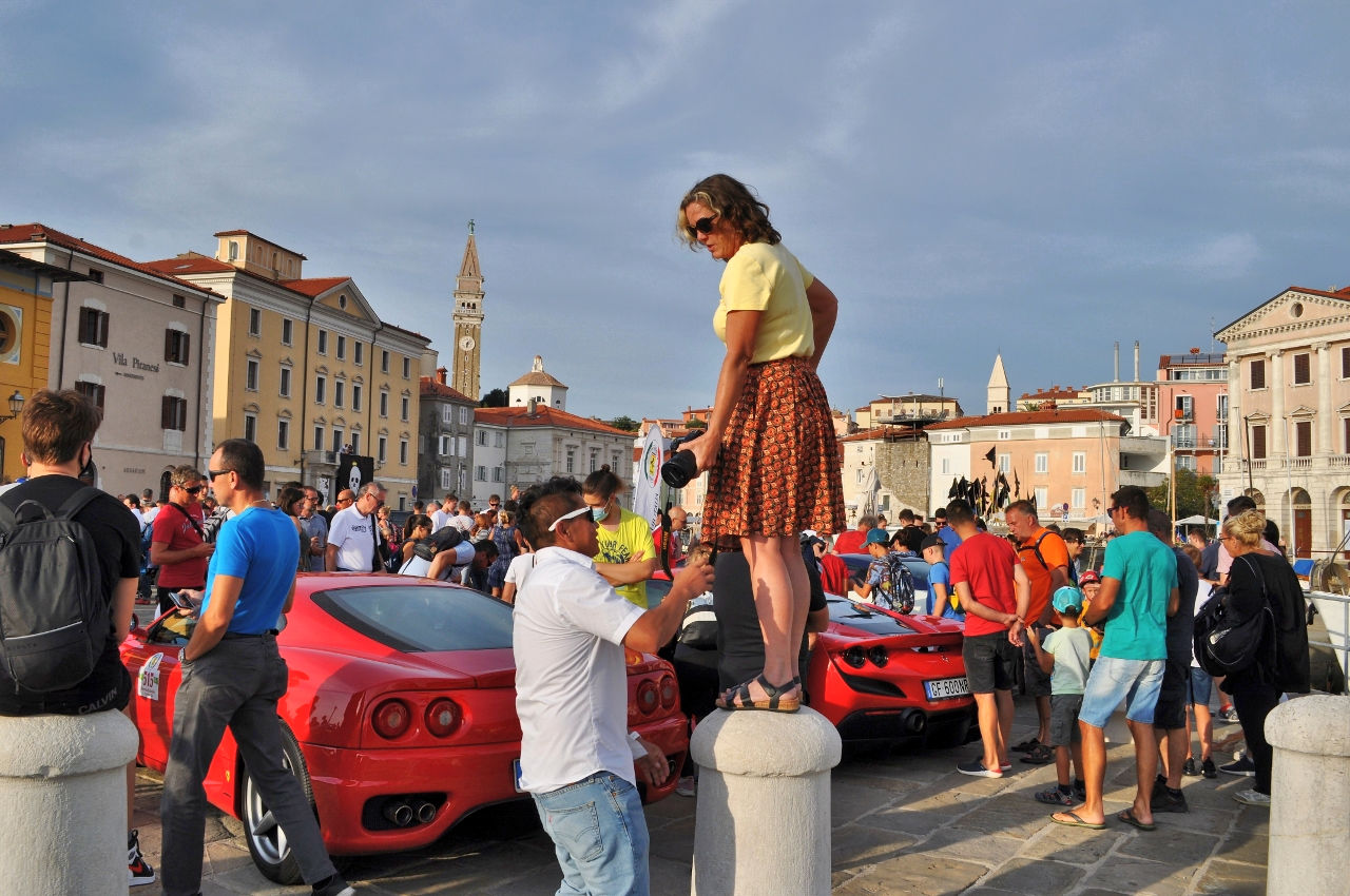 He doesn’t put me on a pedestal, but I sometimes climb up on them myself, like at this Ferrari show in Piran, Slovenia. He’s right there if I need him. {photo by Manja}