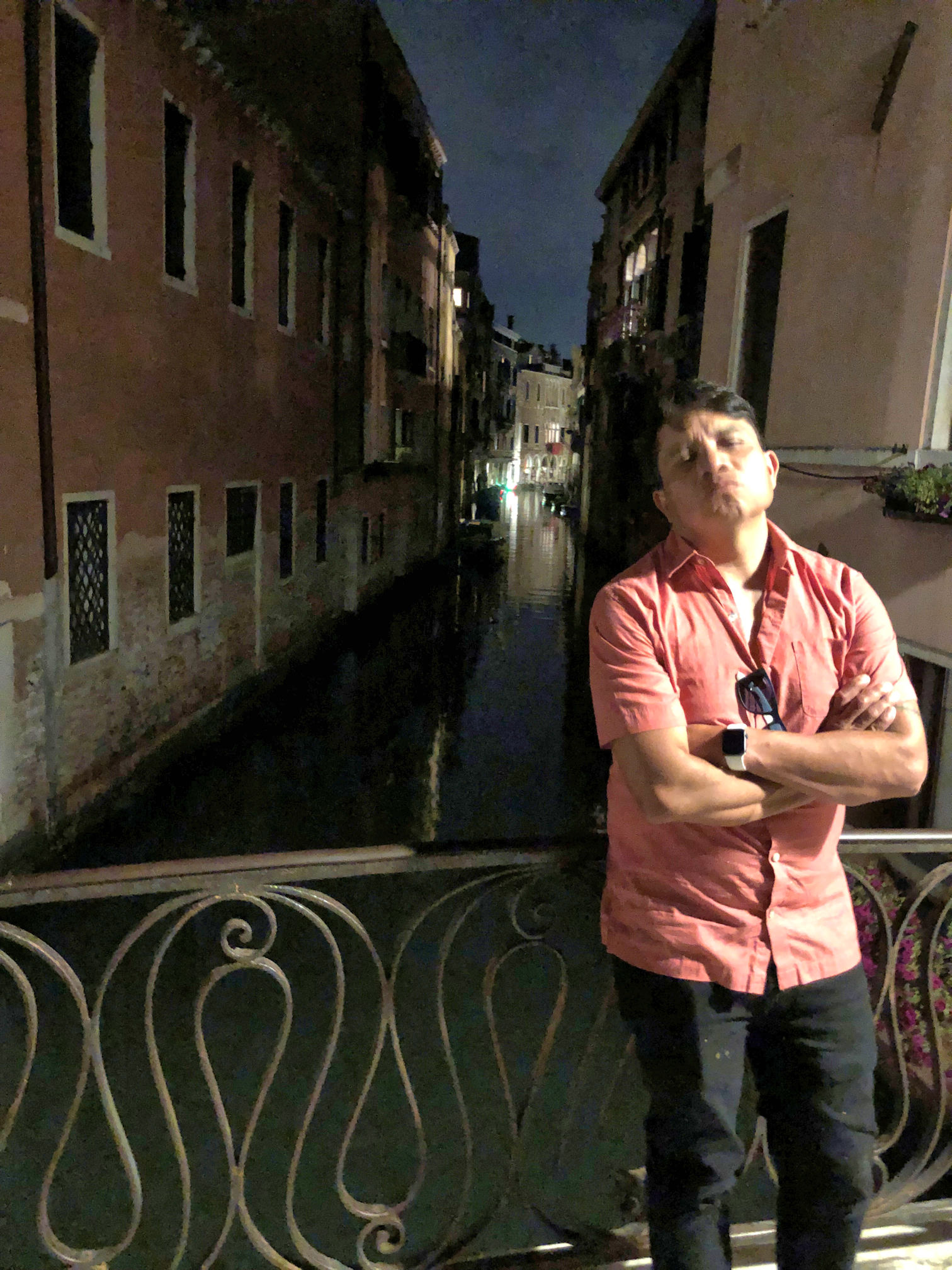 Trying to look like a thug in Venice. It’s no good. He’s not scary at all.