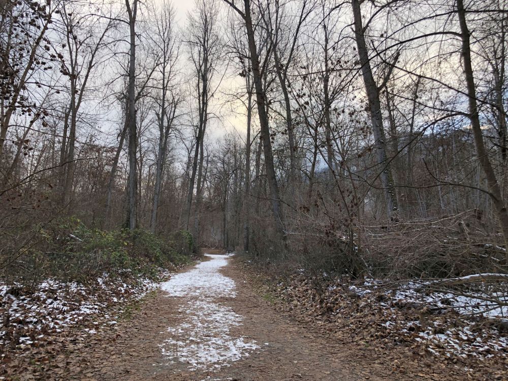 We walked a couple of streets to get a good look at it, then decided to hike Waterfront Park while we still had a little daylight. It had snowed the day before, and a dusting remained on the trail. It was cold the whole time we were there, hovering around 30-31 degrees (-1 to -0.5 C). By the time we completed the park trails, we were ready to head back into town and find a warm place to sit.