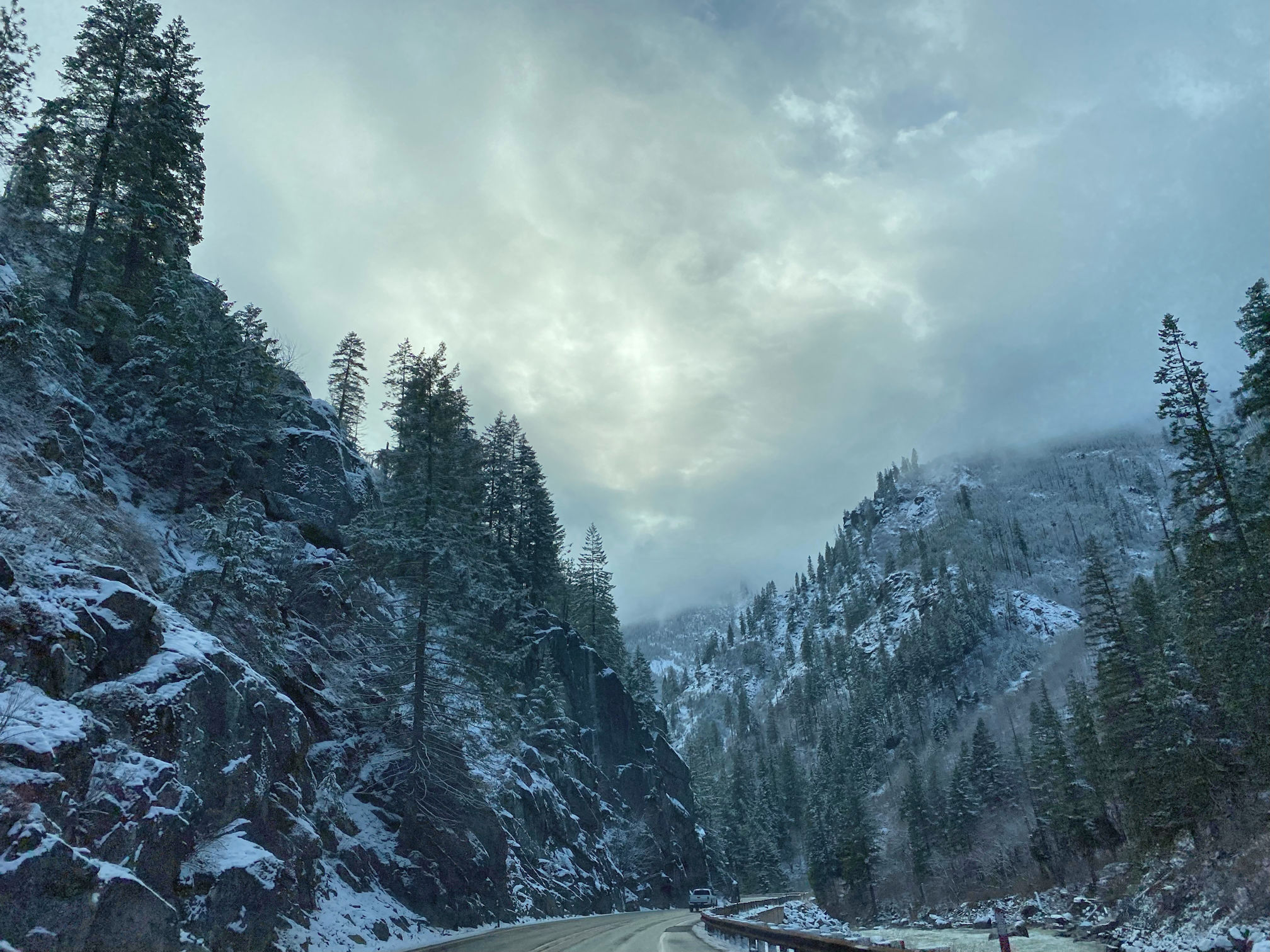 OH how neat, a room over the bookstore. That sounds perfect for you! Since Pedro and I are both from snow country, we felt comfortable with the possibility of a snowstorm. Between the two of us, we would have been able to navigate the pass, even in snow. But we got lucky and the roads were good the whole time. On the way in, it was pretty slushy, but not icy.