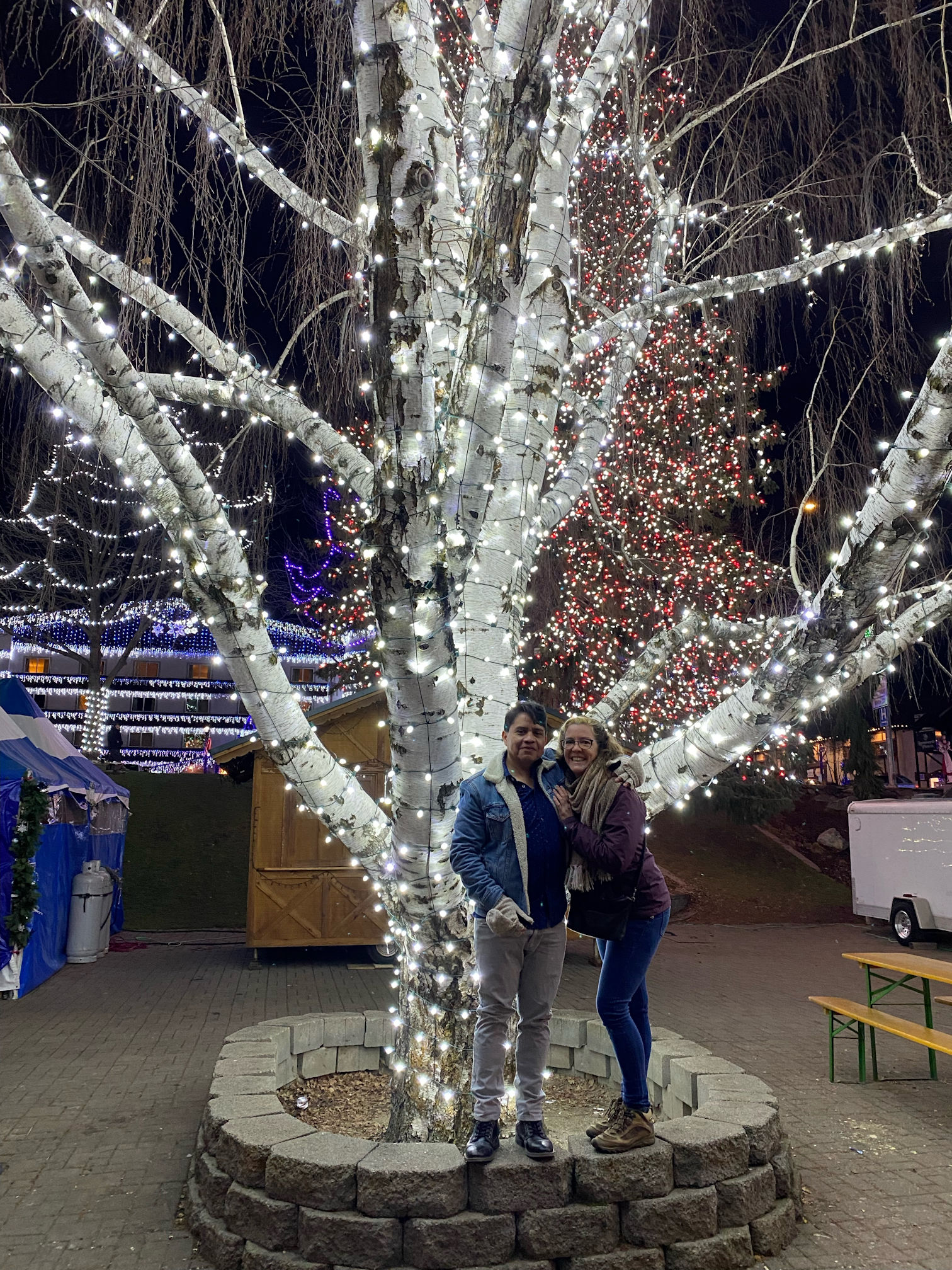 Sounds like a fun place to visit, even if a bit touristy. The lights were very pretty and I liked the photo of your “Cold, but smiling” photo of you and Pedro. Great post!