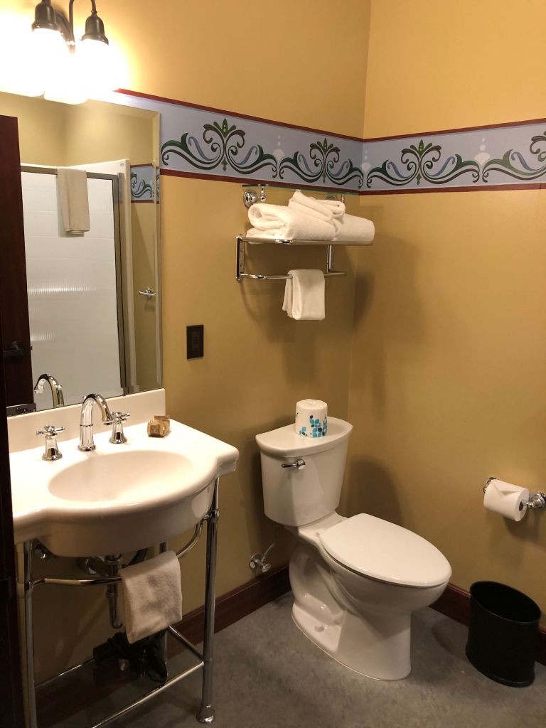 Over the course of three days and two nights, we explored each part of the property that we could, except the brewery, which looked very small and wasn’t open the first day, when we had time for it. Our final morning, after a huge breakfast in the Tavern on the Square, in front of the fireplace with a hearty fire crackling, we went to the pool and swam laps. We had to show proof of vaccination to use it. The pool is open to the public, who pay an hourly fee to swim. But when the bell rings to clear the pool once each hour, hotel guests are allowed to stay and continue swimming for free. So we did.