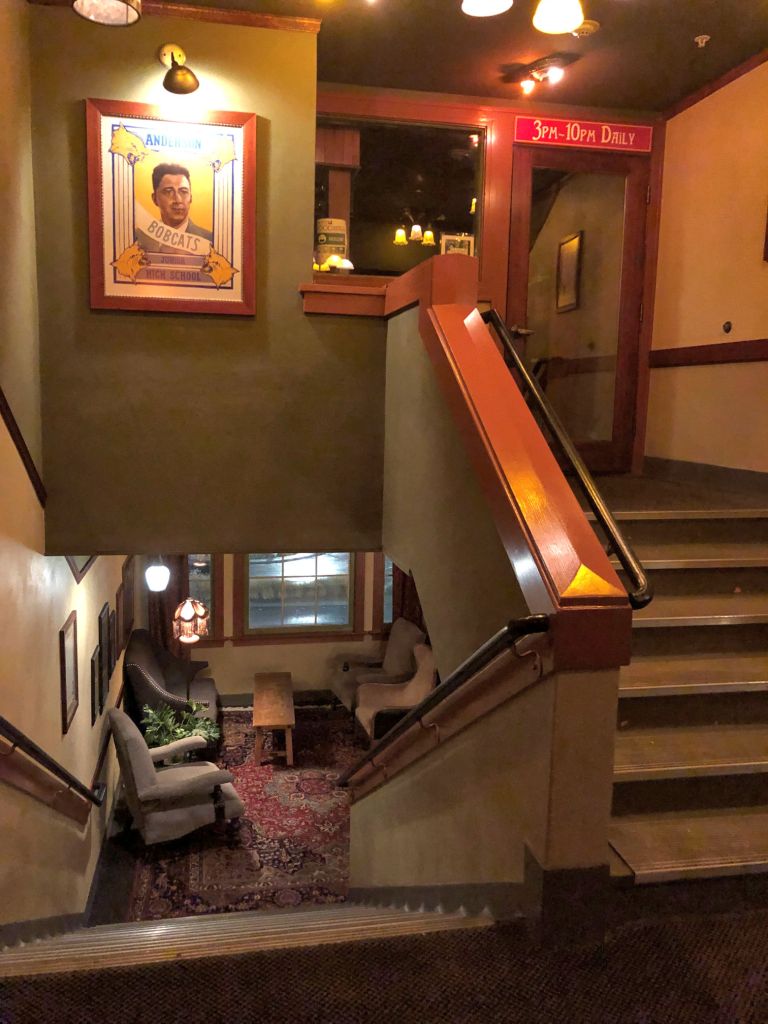 It’s called The Anderson School, because it was previously a Junior High School campus, opened in 1931. Inside the main school building are the rooms, cleverly built into the old classrooms, maintaining the wonderful high ceilings. On the third floor is a short staircase up to “The Principle’s Office,” a tiny bar closed right now because distancing would be too difficult during the pandemic. In properties that are quite large like this one, there are little (and sometimes big) bars and restaurants hidden all over the place. On this property, all the structures that used to be part of the school have been repurposed to serve a new role.