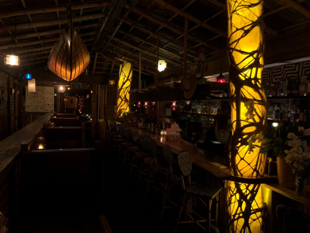 After that, Pedro and I went to the Woodshop to have a drink finally, and play some pool. We were pleased to see that we had to show proof of vaccination in order to be served. Washington state is being more proactive than Oregon. I wish everything required proof of vaccination, so maybe more of the holdouts would get annoyed and go get their shots. We were having fun and played about five very long games (we are both bad at pool) till my brother and his girlfriend (who live in Seattle) showed up for dinner. She had researched, and discovered that the menu at the North Shore Lagoon was different than other McMenamin’s menus. In keeping with the South Seas theme of the pool, the restaurant served menu items inspired by the South Seas. There is Thai Sweet Potato Fries with fried shallots, onion, cilantro, jalapeño, and Sriracha aioli, Spring Rolls, Pork Belly Báhn Mì, jerk chicken with mango chutney, dishes with Spam, or ahi poke, jasmine rice, coconut curry, and sesame-ginger slaw. While most McMenamins serve more or less the same menu, this place was culinary exploration!
