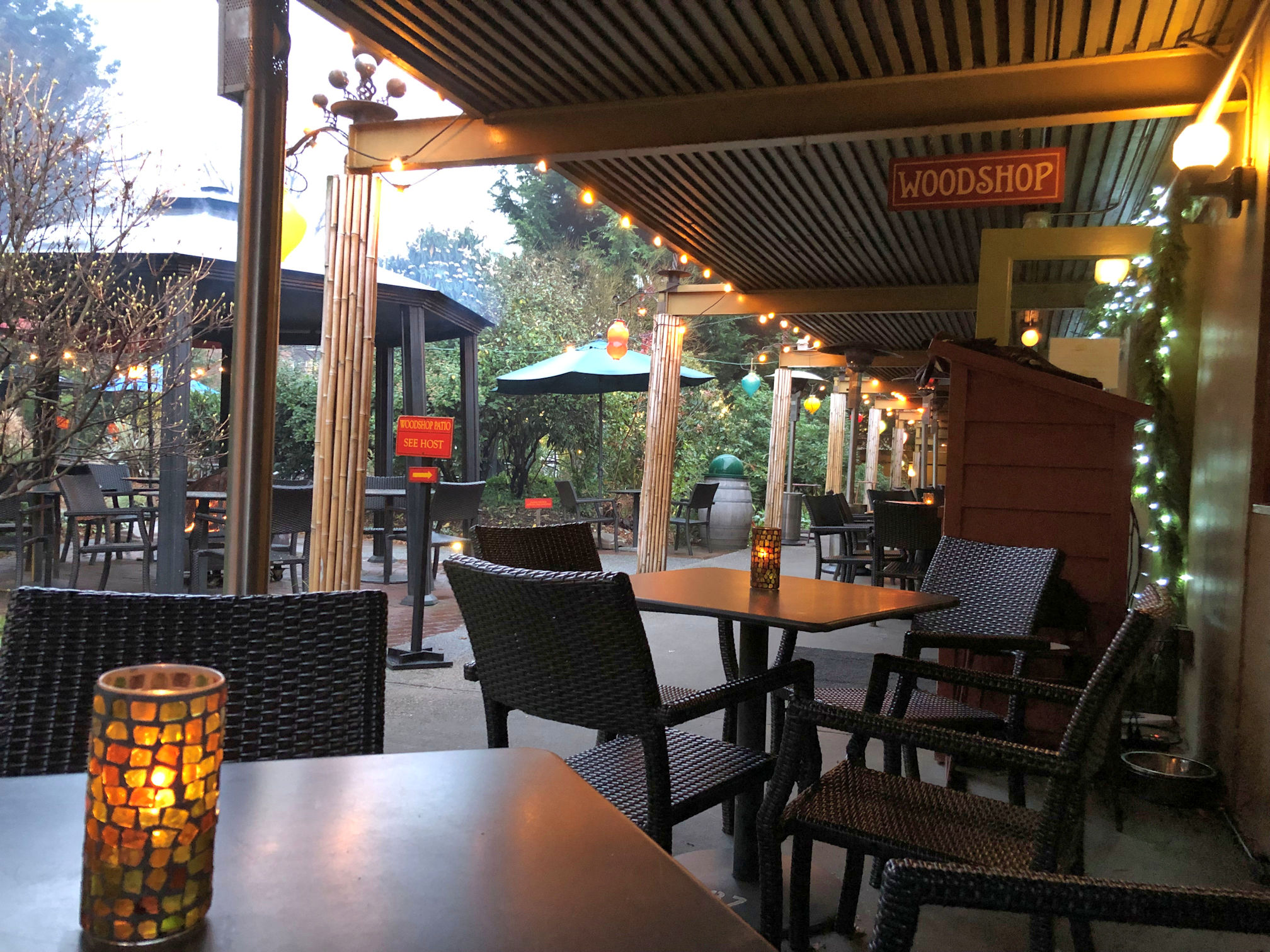 Pedro and I arrived late afternoon on a Monday in December. The place was totally dead, so we had an opportunity to wander around the entire place and explore without bothering anyone. All my photos for this post were taken when the property was nearly deserted, but trust me it was filled with people inside and outside both nights we stayed there. At McMenamin’s hotels, guests are encouraged to poke into every corner, walk on every path, push through doors and peer around corners. I realized, while we were touring the garden, that a benefit of reclaiming a historic site is that the trees can be enormous – something unexpected with a hotel that only opened in 2015. There are beautiful trees in the garden that have been here for many years.